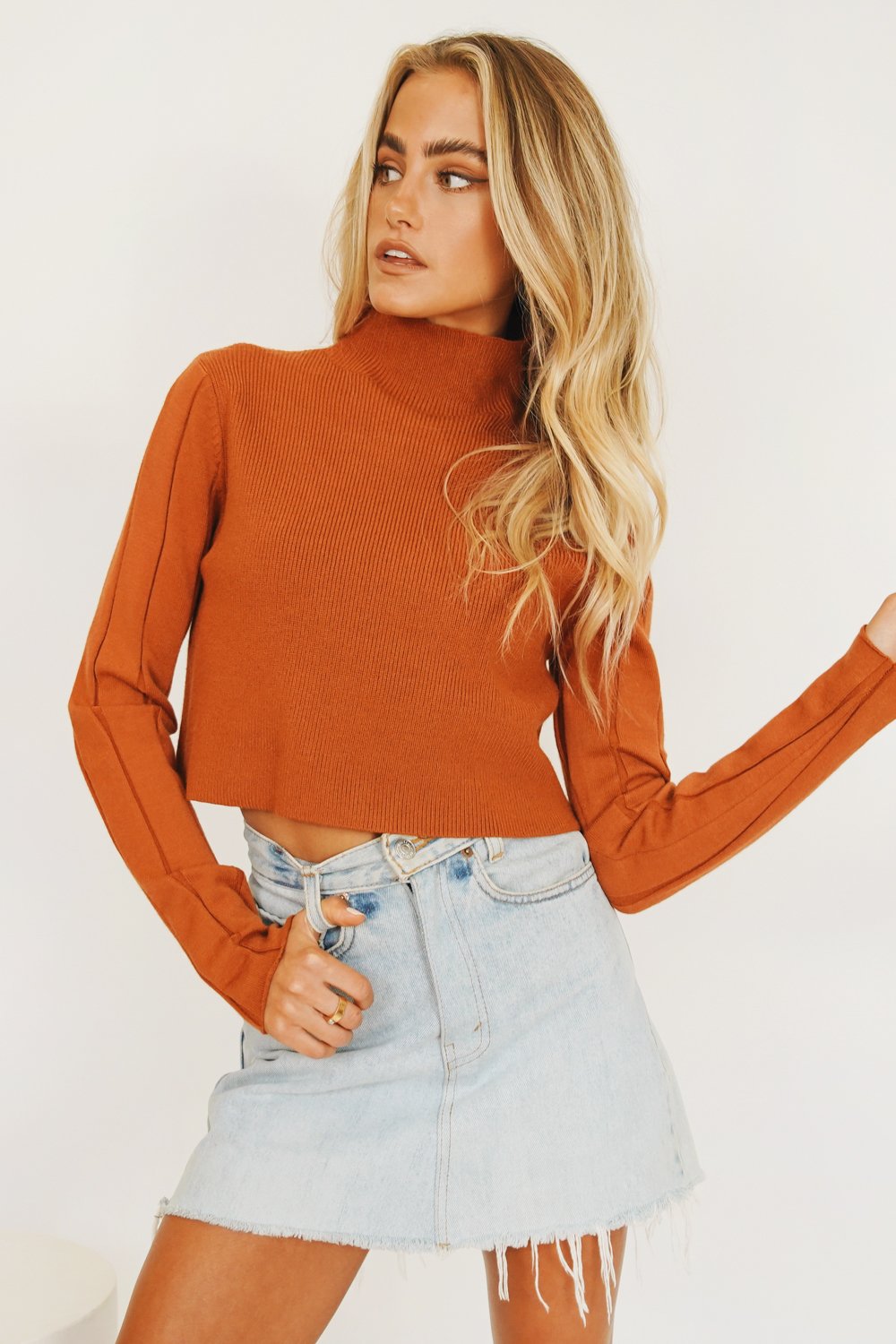 The ultimate NY street style look! Our Party People Knit Top is made from a super soft ribbed fabric & fits you body perfectly - we love this high neck number styled with vintage denim & tan boots!