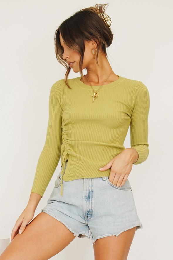 Late mornings & brunch with the girls... This easy wear number looks so cool with vintage Levi's & strappy mules. Featuring a soft, ribbed knit fabric & drawstring side - this top is a need not a want! Also available in Nude, Pink & Sky.
