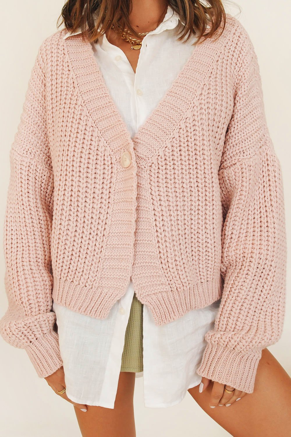 • Load image into Gallery viewer, Morning Rain Button Front Knit Cardigan // Blush