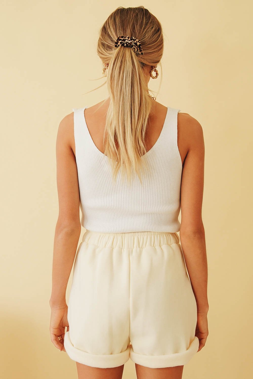 The "not so basic" knit top you need! Featuring a soft ribbed knit fabric & centre front buttons, we're wearing this number with vintage denim jeans & 90's style mules! Also available in Salmon.