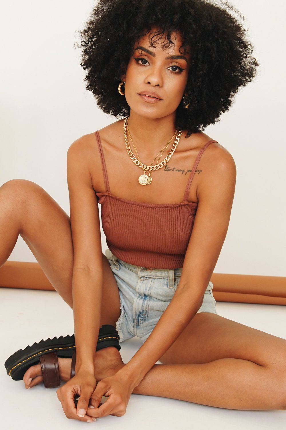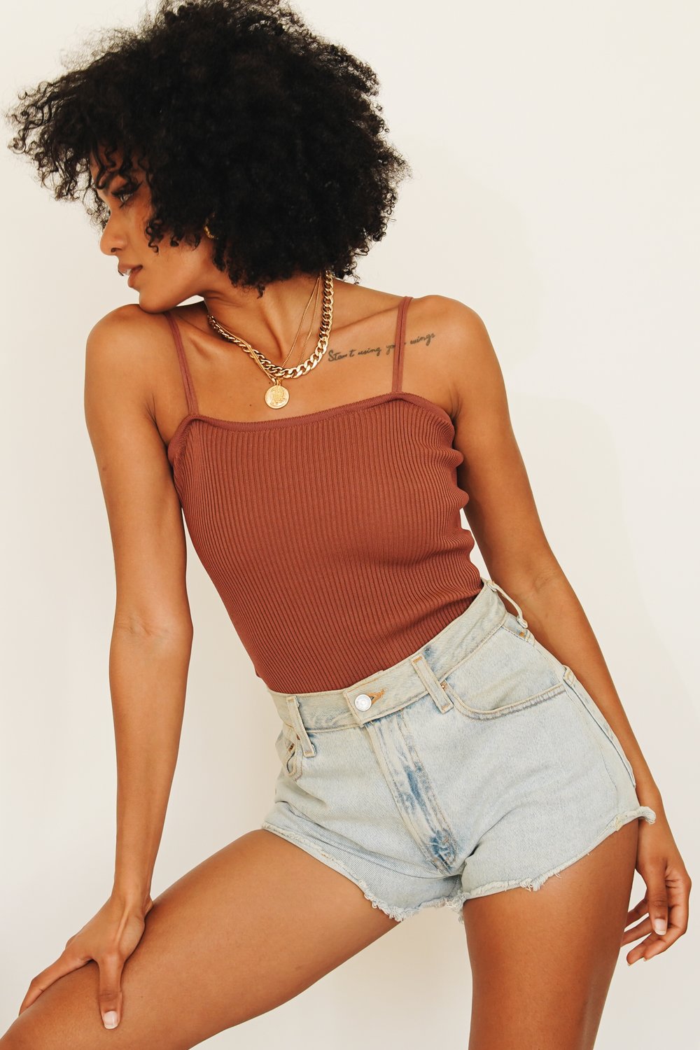 Back To Basics Baby! This stretch ribbed knit top is so soft, it will have your back every weekend! Pair with your fave vintage Levi's and flip-flop mules for an effortlessly cool look. Also available in Natural & Mustard.