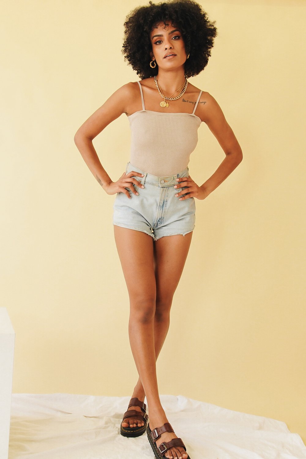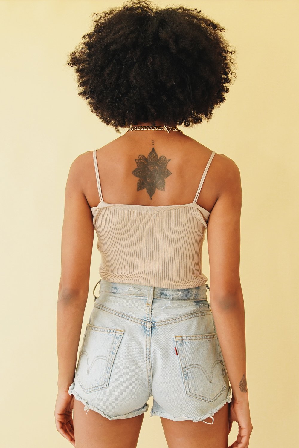 Back To Basics Baby! This stretch ribbed knit top is so soft, it will have your back every weekend! Pair with your fave vintage Levi's and flip-flop mules for an effortlessly cool look. Also available in Chocolate & Mustard.