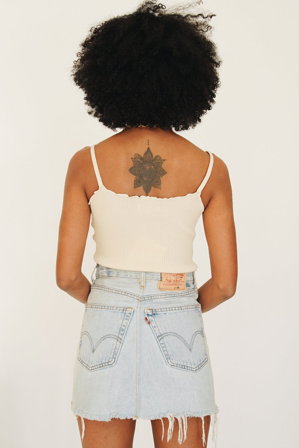 For a weekend on the go... This easy wear number looks so cool with vintage Levi's shorts & sneakers. Featuring a soft, stretch fabric & baby lock trimming - this top is a need not a want! Also available in Chocolate.
