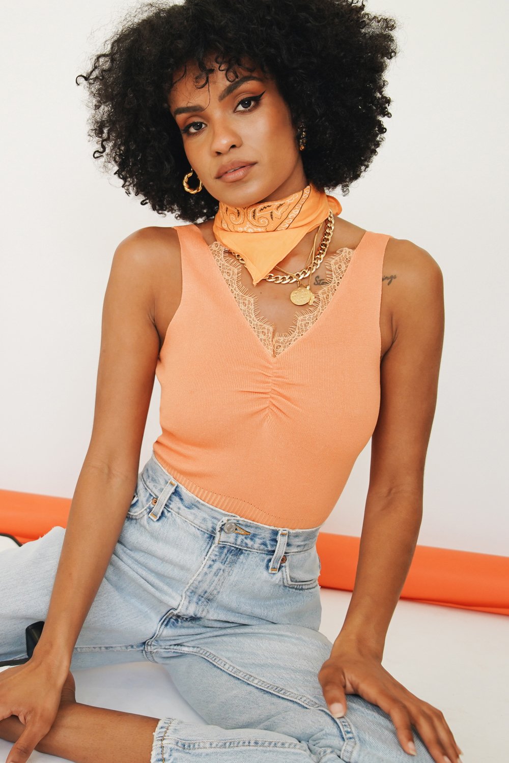 Effortless & Chic. Made from a stretch, knit fabric, this easy wear number is the perfect go-to for busy weekends, pair with your fave vintage jeans & mules. We're obsessed with the lace trimming & elastic ruched bust!