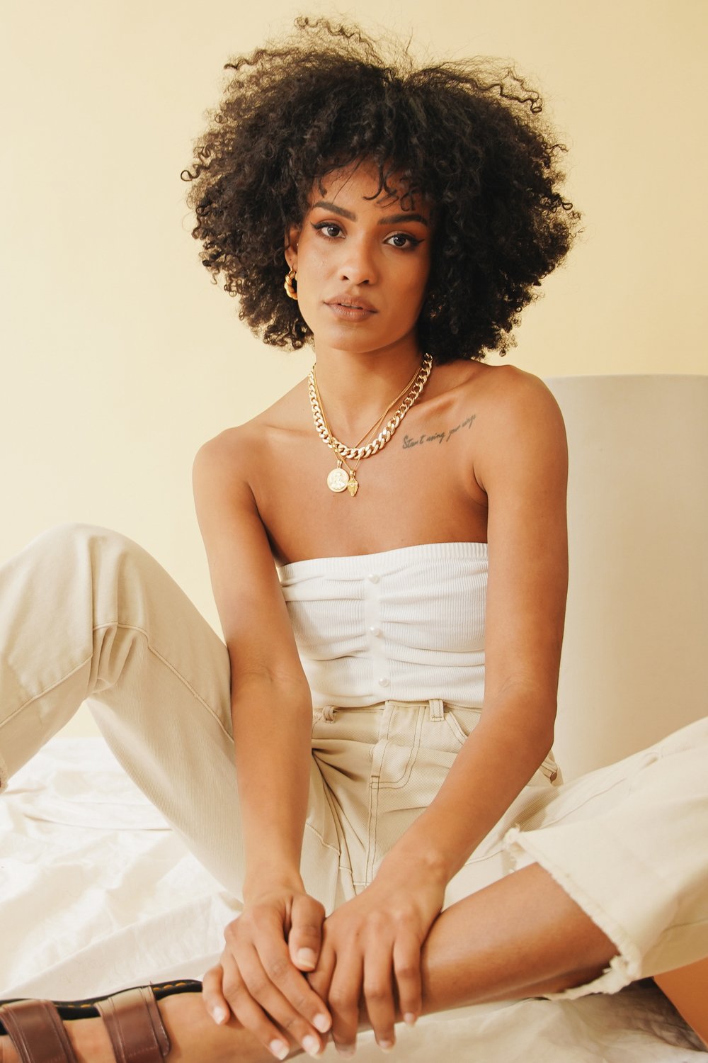 The ultimate Parisian street style look! Our Only You Knit Boob Tube is made from a soft stretch fabric & features a ruched body & button detailing - we love this number styled with a linen mini & tan boots.