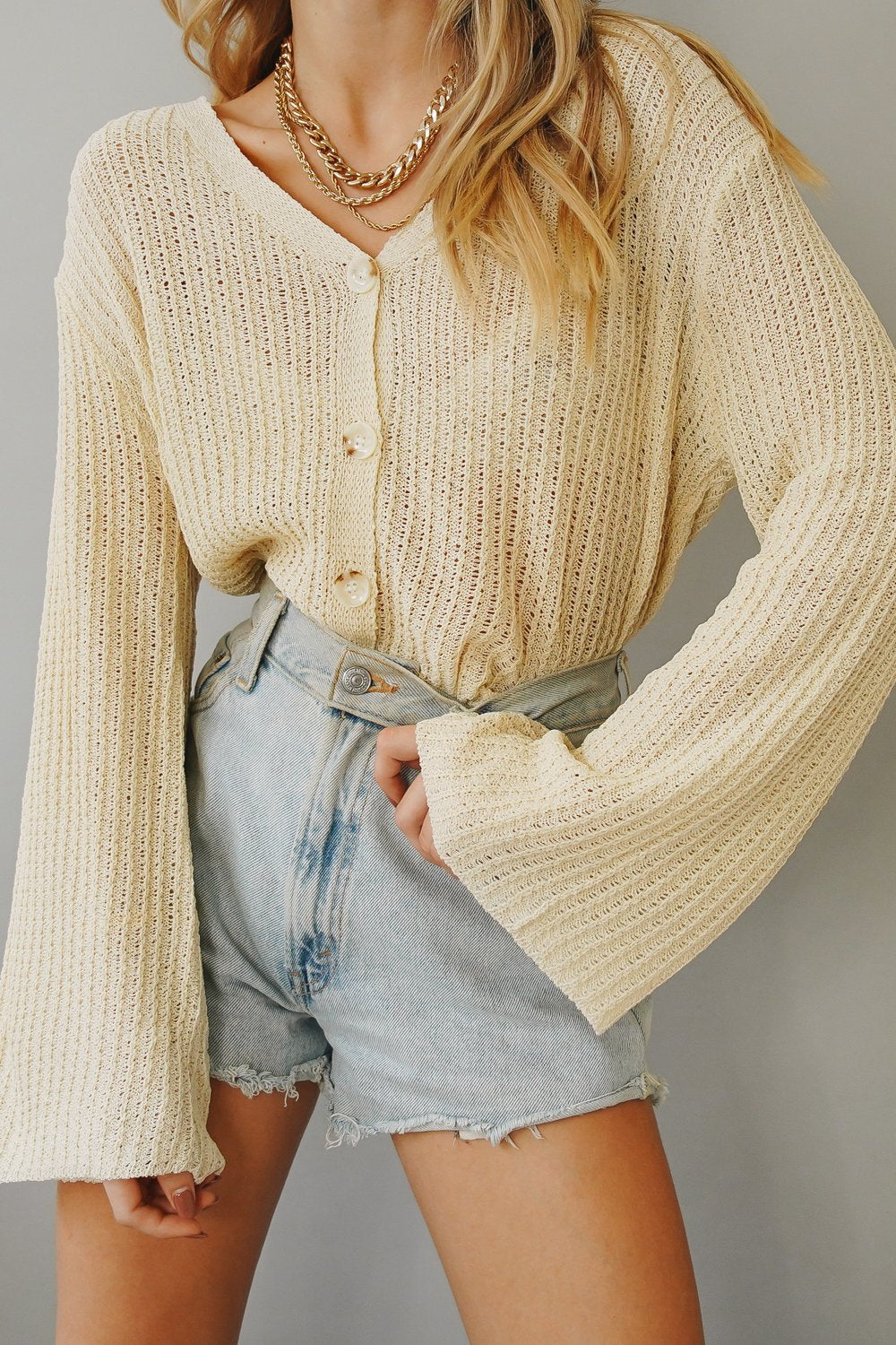 Neutral is always a good idea... Wake up late & throw on our Sunday Mornings Button Front Knit Top with your fave denim for brunch with the girls! Also available in Cream. Please note bralette worn underneath is not included.