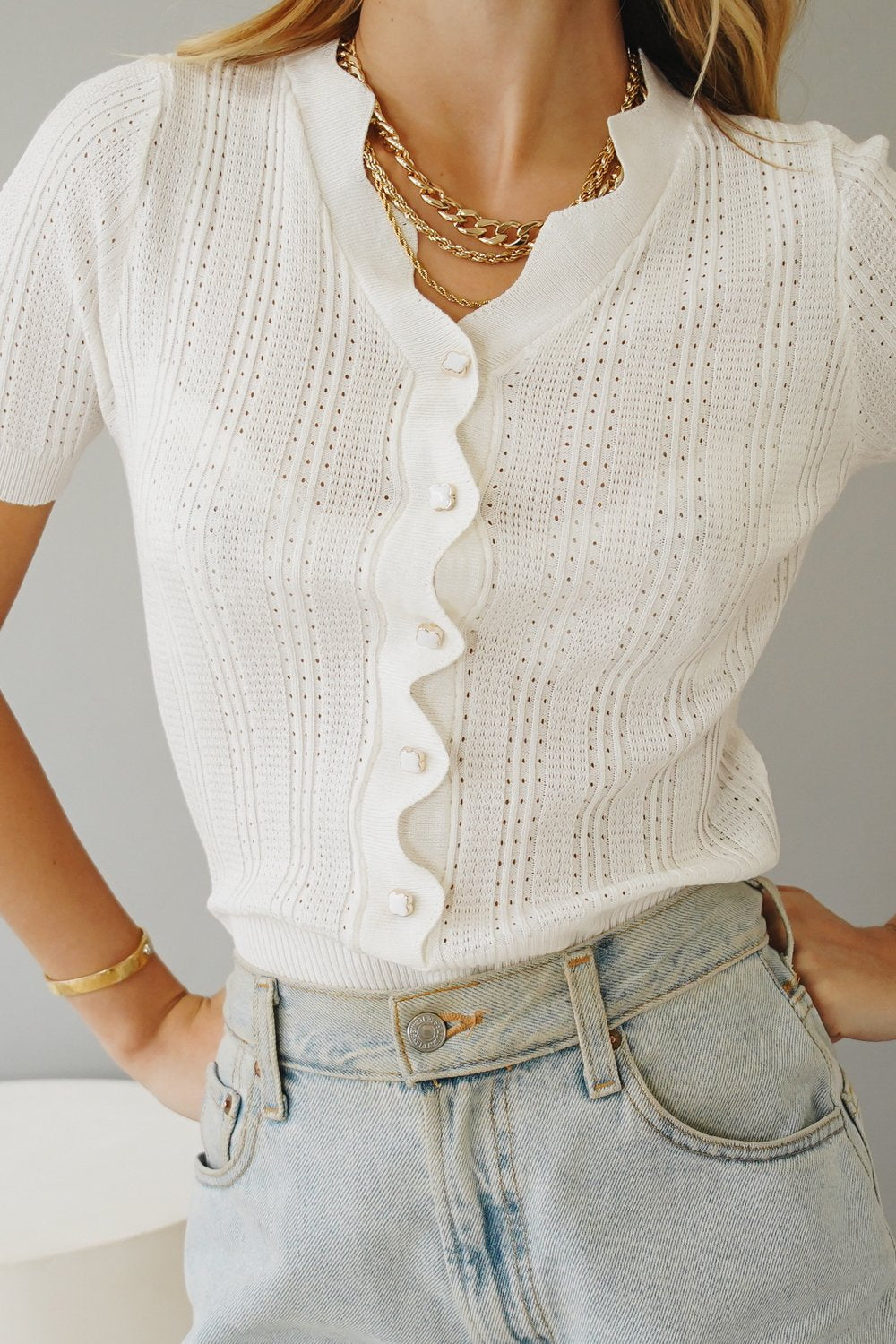 We're always dreaming of Paris... and this knit top is making us feel like total French girls. Effortless yet chic featuring centre front buttons, we are styling this with vintage denim & woven mules for a chic street style look. Please note bralette worn underneath is not included.
