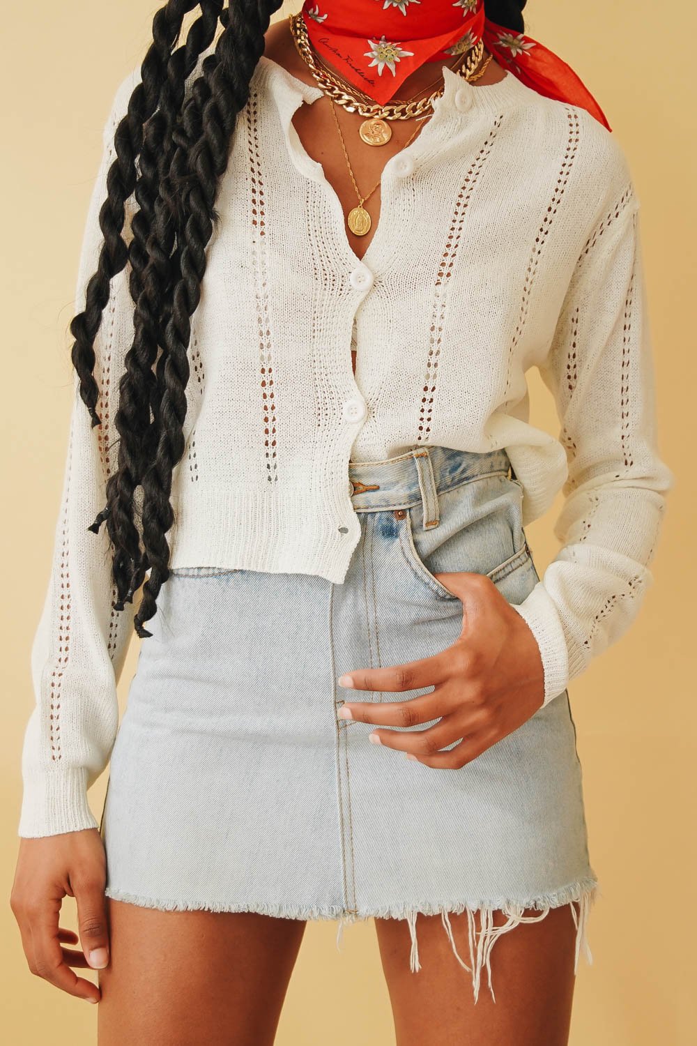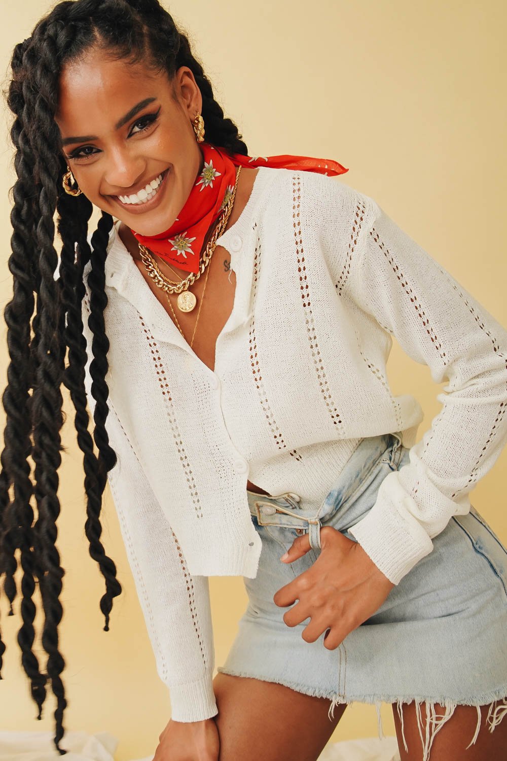 We're dreaming about our next vacay to Paris... and this knit will have you feeling like a total French girl! Effortless yet chic featuring centre front buttons & a stretch knit fabric, this number will go with anything! Also available in Nude. Please note bralette worn underneath is not included.