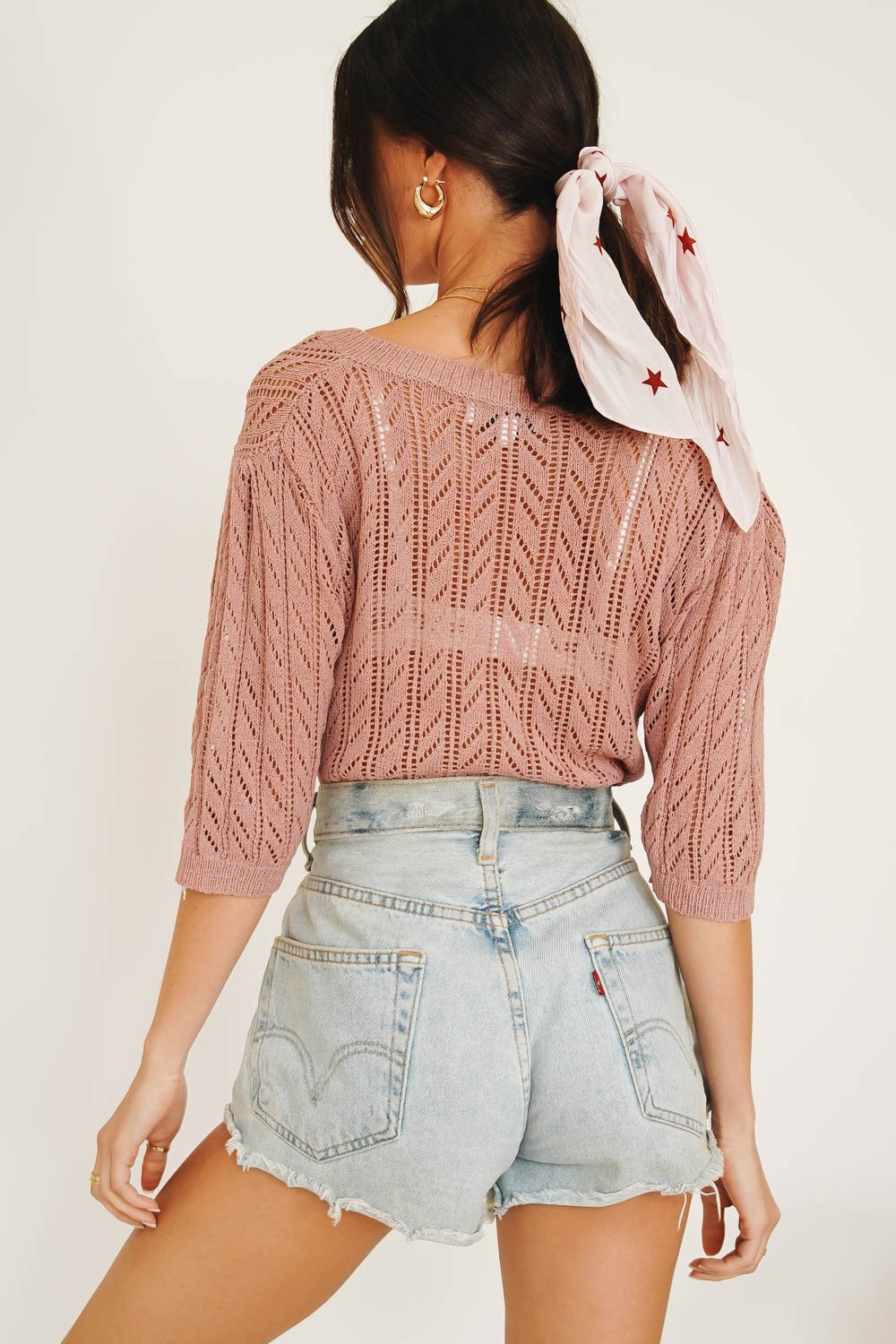 Easy weekends & road trips... Featuring centre front buttons & made from a stretch knit fabric, our Ultimate Girl Knit Top will literally go with anything! Pair with vintage denim shorts & pastel mules for a femme cool look. Also available in Lake. Please note bralette worn underneath is not included.