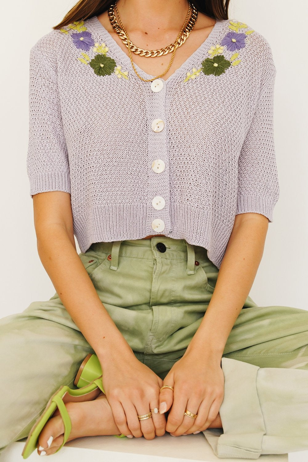 Wake up late & slip into your new fave knit top for brunch at your fave cafe. With a button up front & floral embroidery, this baby is perfect styled with vintage denim or your fave linen mini skirt. Also available in Natural & Lemon.