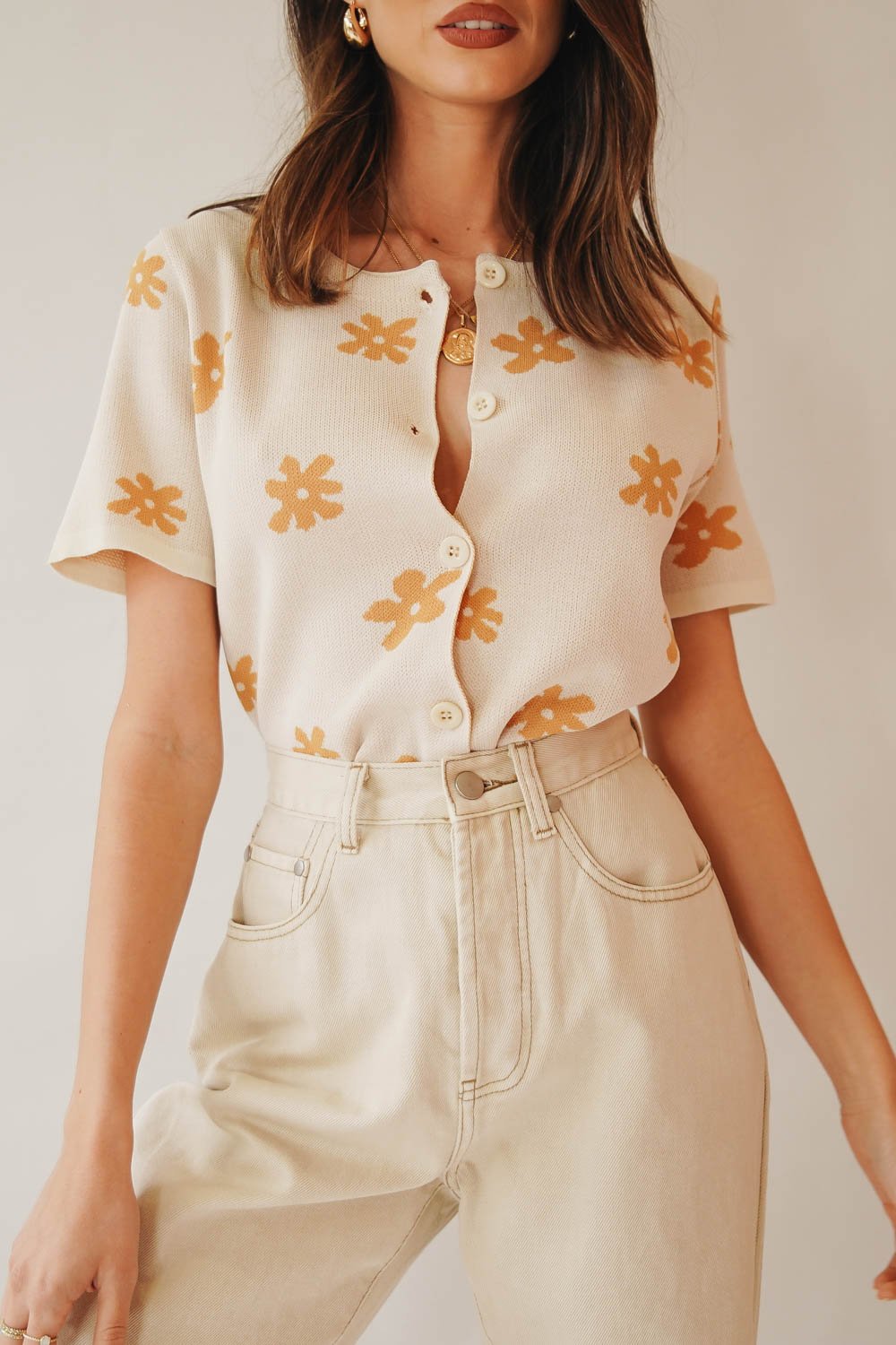Wake up late & slip into your new fave knit top for brunch with the girls. Featuring centre front buttons & a chic floral design, this baby is perfect styled with vintage denim or your fave linen mini skirt!