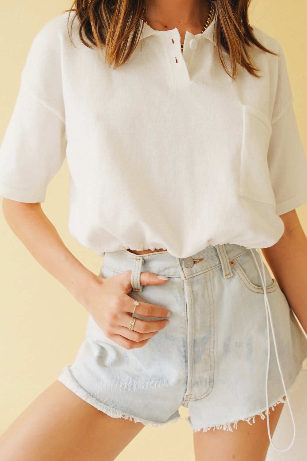 The Stones Drawstring Knit Top // White