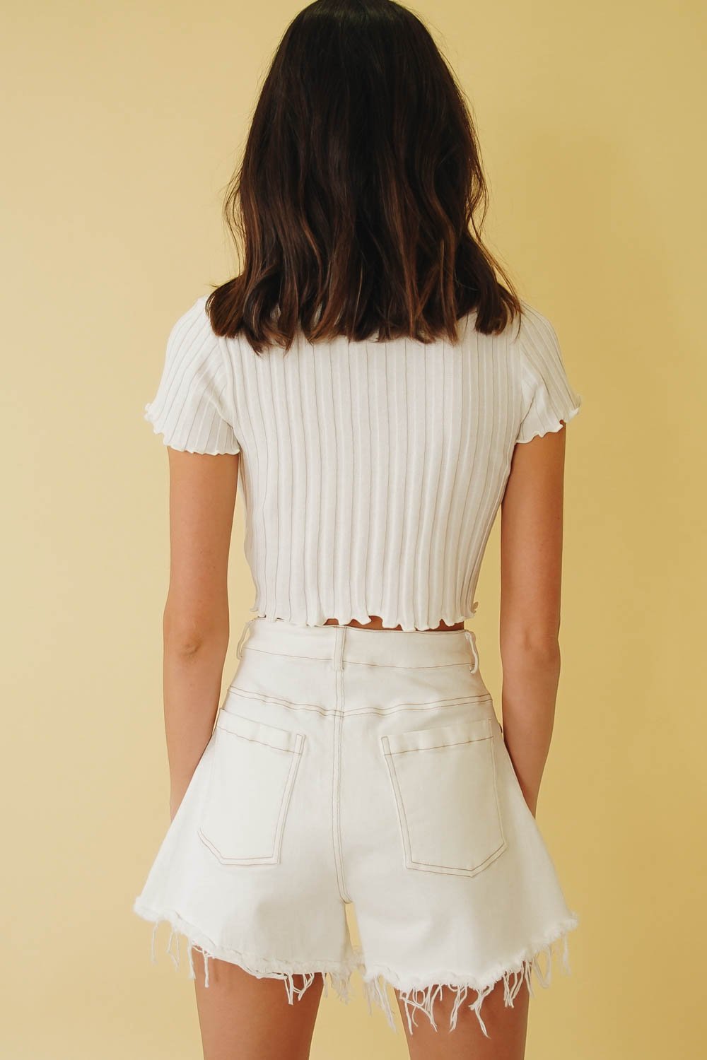 We've found your denim's best friend! This knit top is made from a soft ribbed fabric & features centre front buttons. Style with denim jeans, tie up mules & gold accessories for an effortless feel. Also available in Lime.