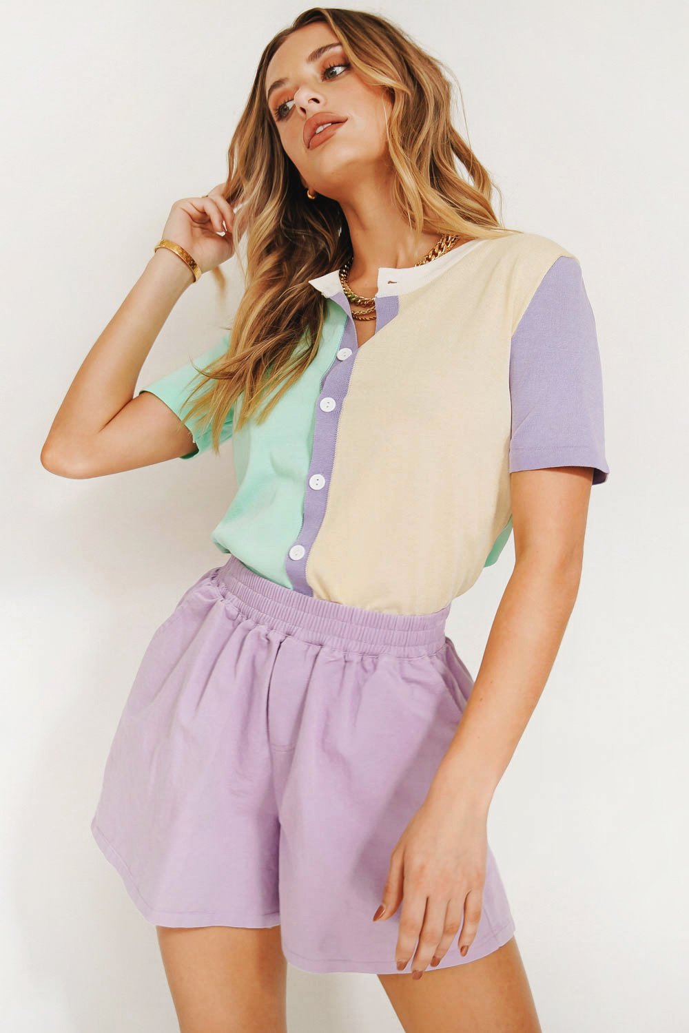 Comfort + Effortless Cool! We're styling our easy wear Strolling Down Los Angeles Shorts with our fave vintage tee & sneakers for a go-to weekend look! Also available in White.