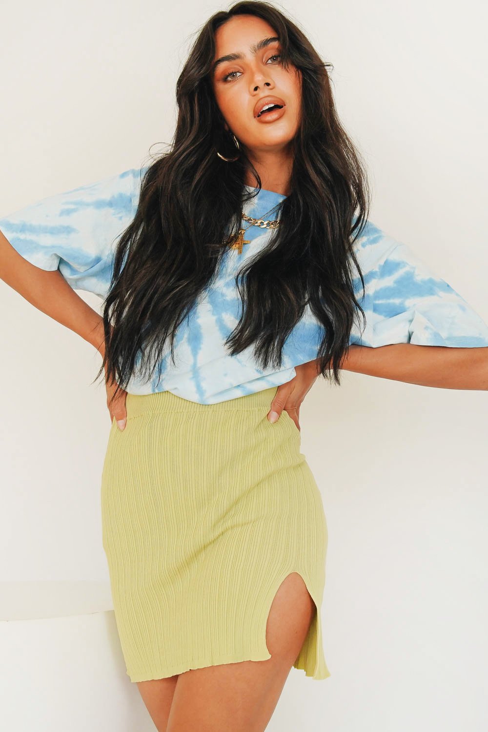 • Load image into Gallery viewer, Coastline Dreaming Knit Mini Skirt // Lime