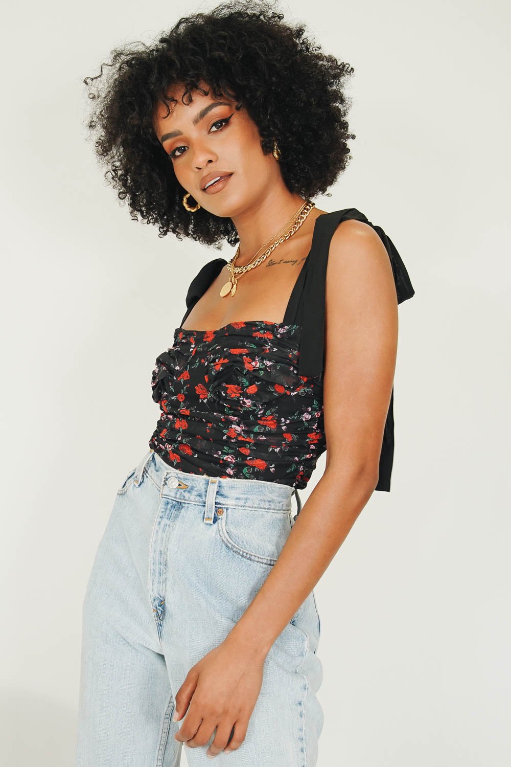 The ultimate Parisian street style look! Our French Coastline Tie Top has all the details you want, in the right places; Featuring a ruched body, bony at the bust, elastic back waist & tie up shoulder straps! We love this number styled with a linen mini & tan boots. Please note tee worn underneath is sold separately.