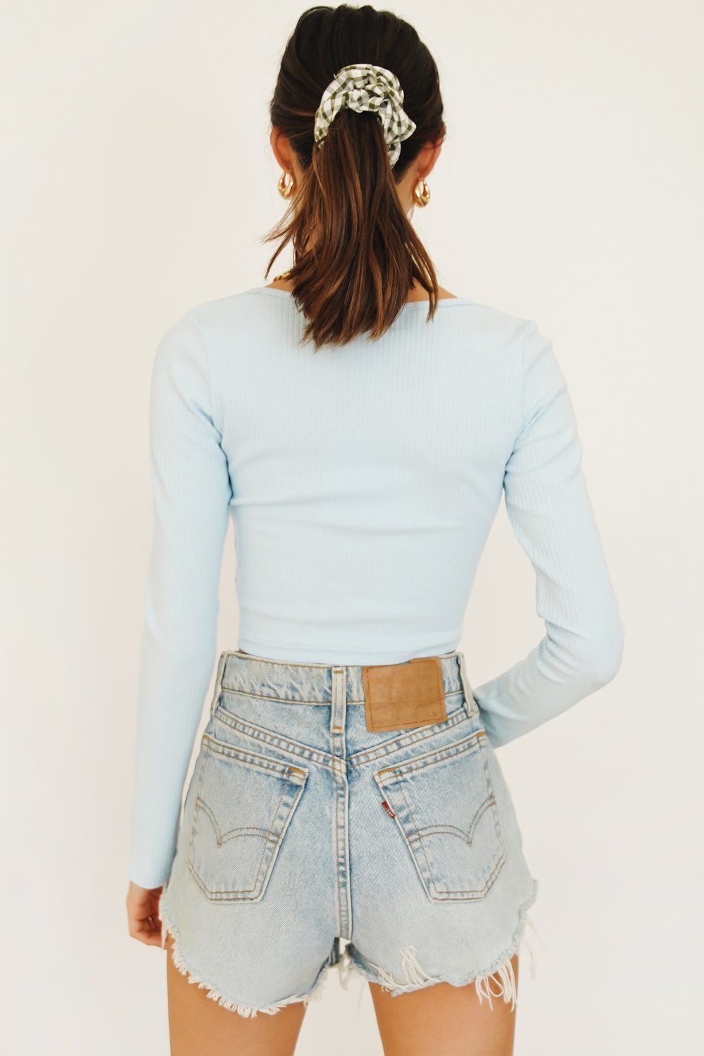 Model Off-Duty Vibes... This ribbed, button front top is giving us total Bella vibes styled with vintage denim, sneakers & layered gold accessories. Also available in Cream.