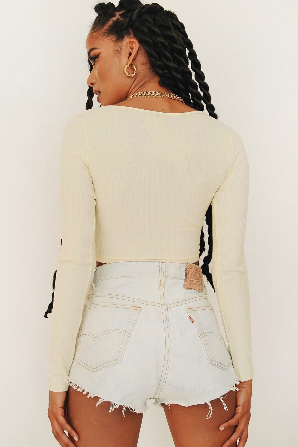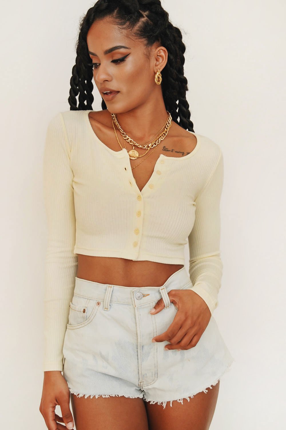 Model Off-Duty Vibes... This ribbed, button front top is giving us total Bella vibes styled with vintage denim, sneakers & layered gold accessories. Also available in Sky.