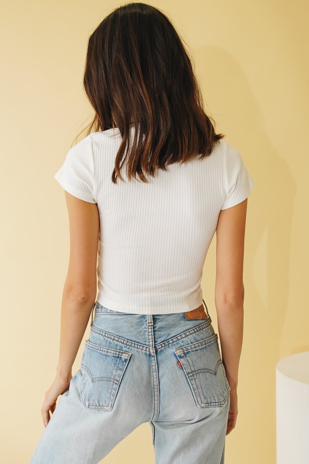 From weekdays to weekends - this is an everyday number! Made from a stretch ribbed fabric, this top will hug your body perfectly & look effortless styled with anything from vintage denim to a silky midi skirt for those vacay feels! Also available in Lemon.