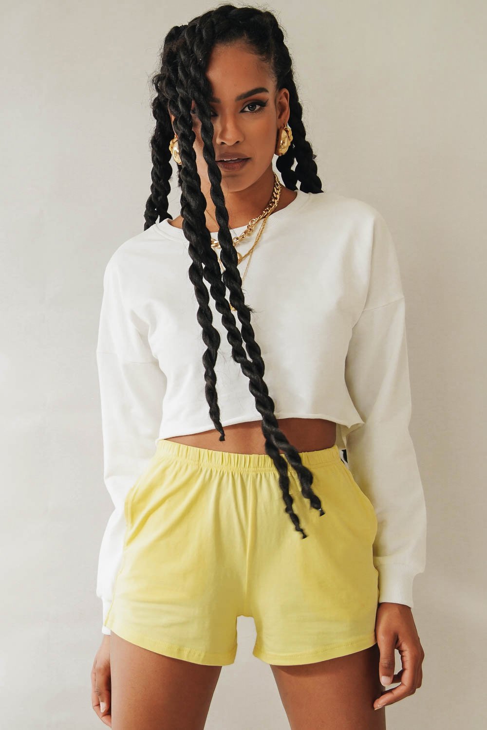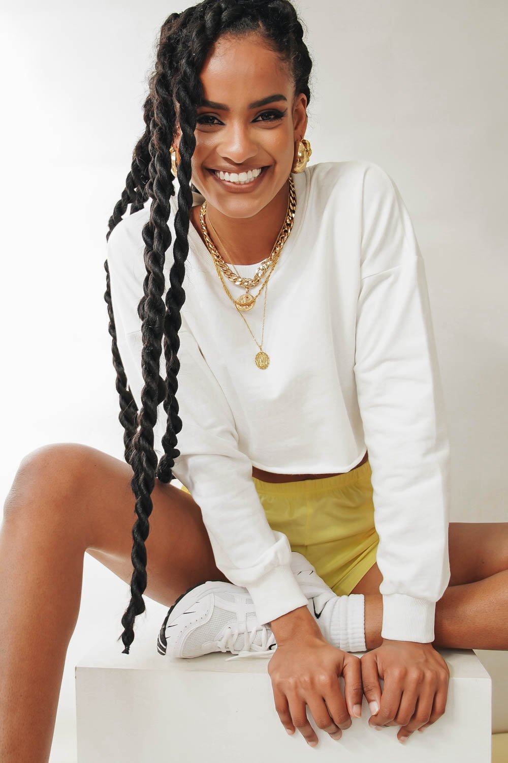 The ultimate cool girl street style look! Our Californian Sky Top is made from a soft stretch fabric & is the ultimate basic for a weekend spent on the go! We love this number styled with vintage denim & sneakers!