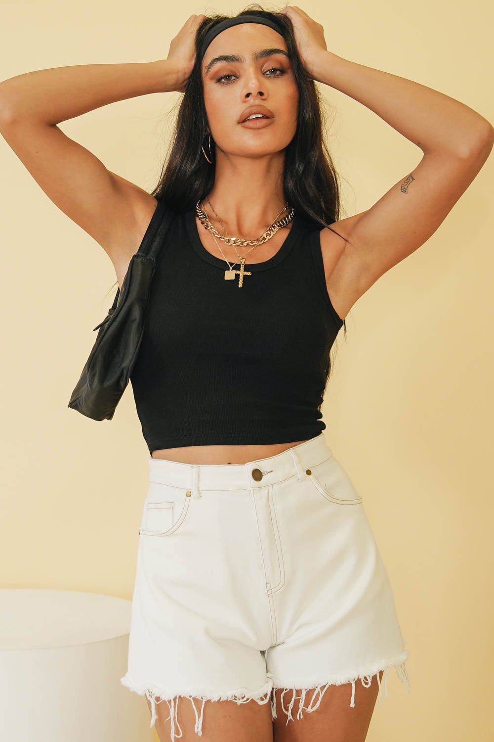 Slip into your new fave basic top for the ultimate weekend go-to! Made from a soft ribbed fabric, we're styling this number with a mini skirt or vintage denim & tie up mules! Also available in White & Sky.