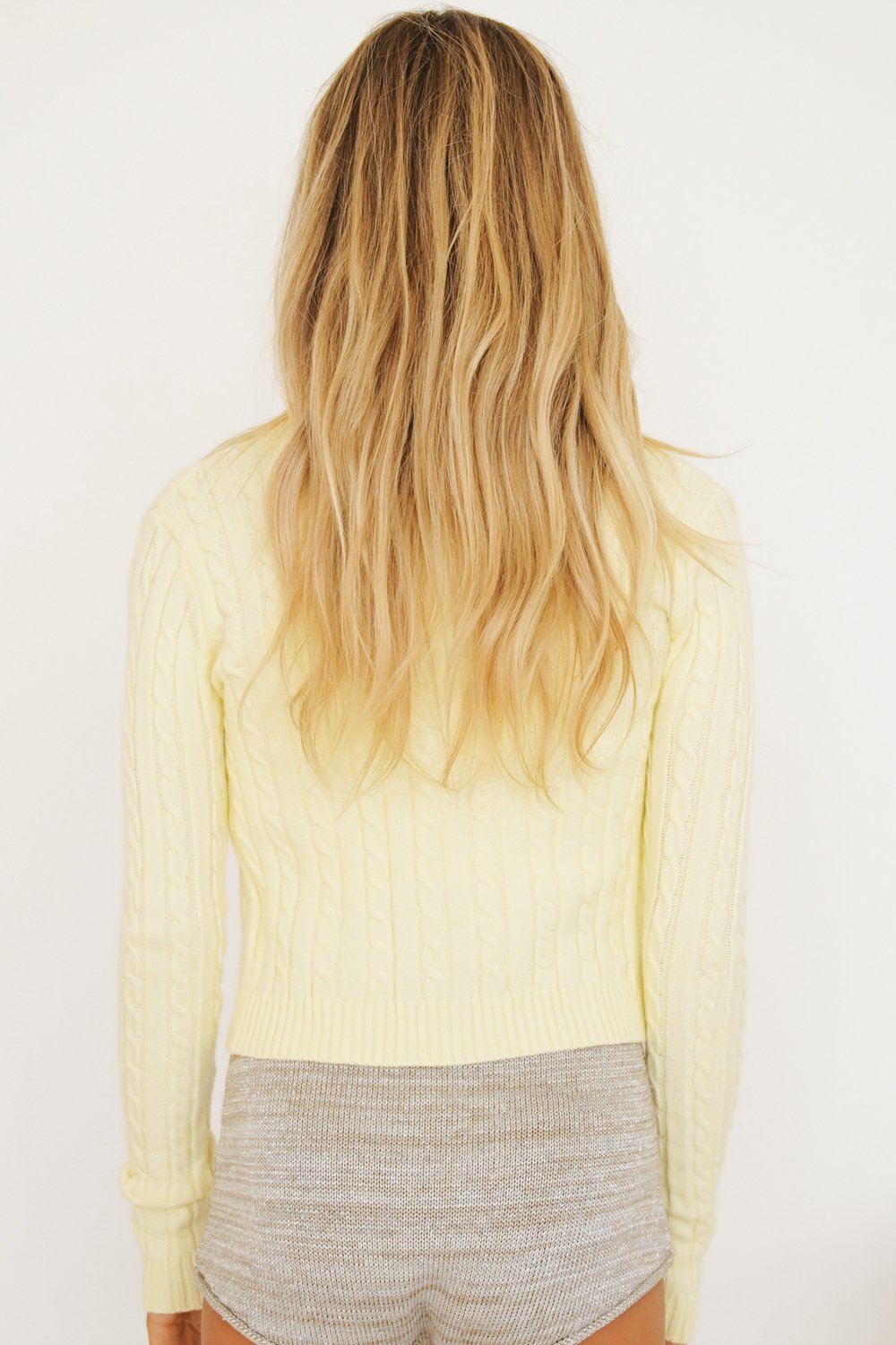 For slow mornings, coffee in bed & treats from the bakery. Our New Manta Knit Top features centre front buttons & a cable knit design. Wear with your fave vintage denim for a femme & chic feel! Also available in Sky. Please note top worn underneath is not included.