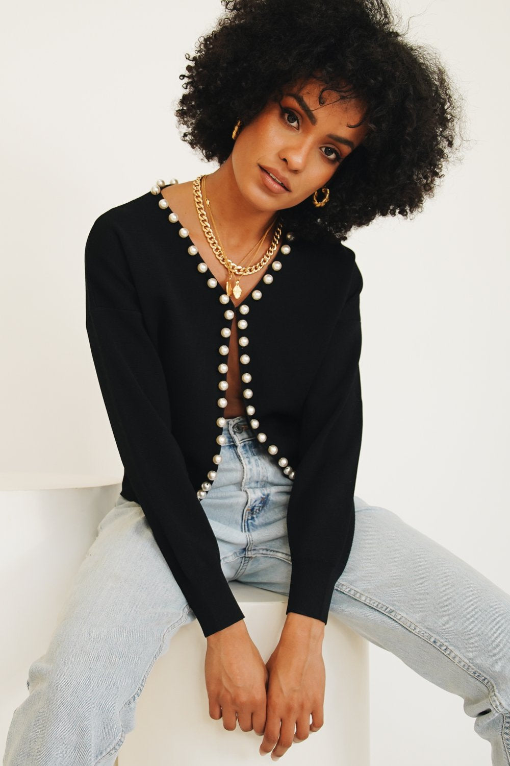 The ultimate Parisian street style look! Our Call From Paris Knit Top is made from a stretch knit fabric & features pearl detailing - we love this number styled with a linen mini & tan boots for a total French girl feel. Also available in Natural.
