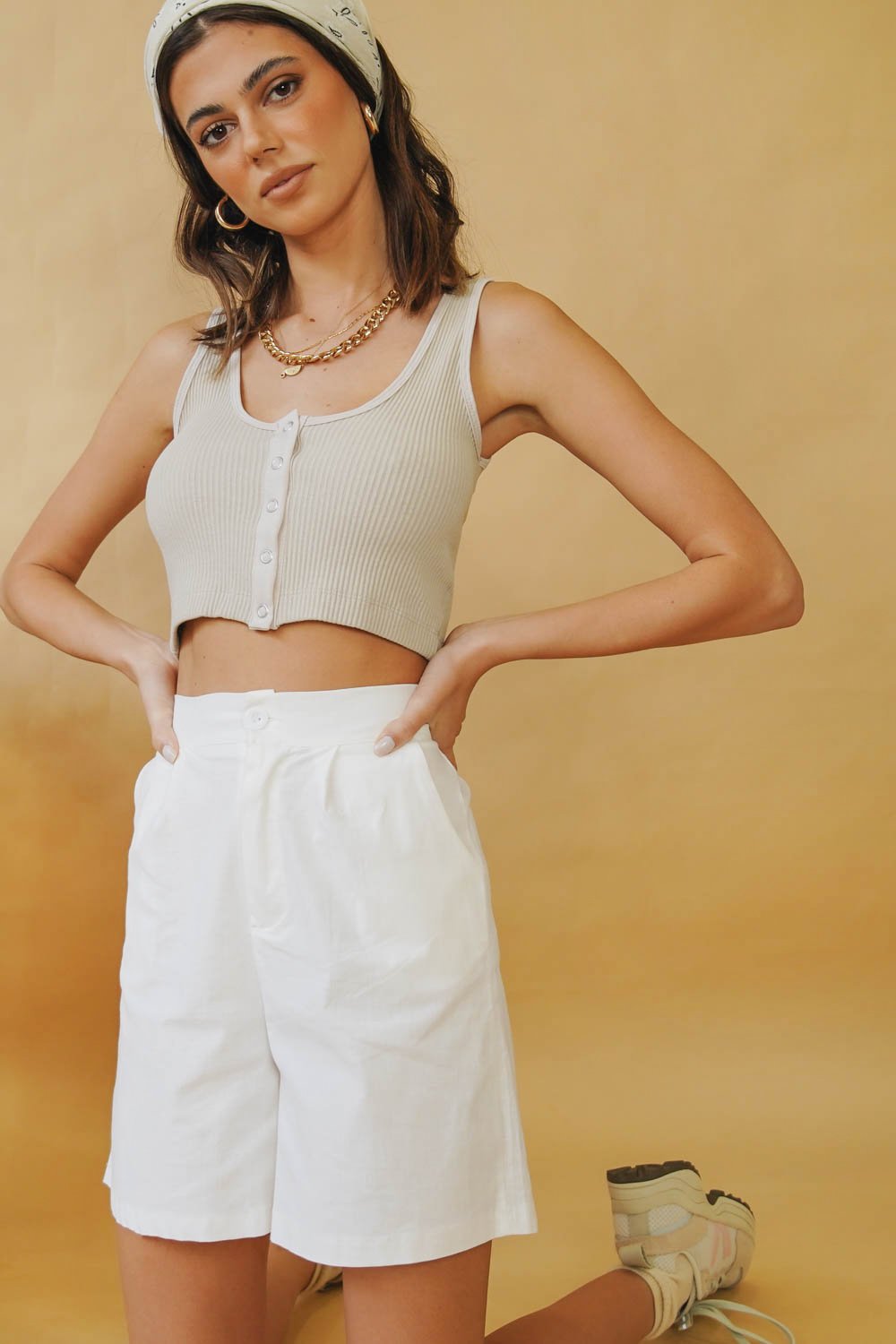 The linen shorts you need in your wardrobe! Their high waist will cinch you in & mom style cut fits in all the right places. Dress our Fashion Find Shorts up or down - You can literally wear them with anything!