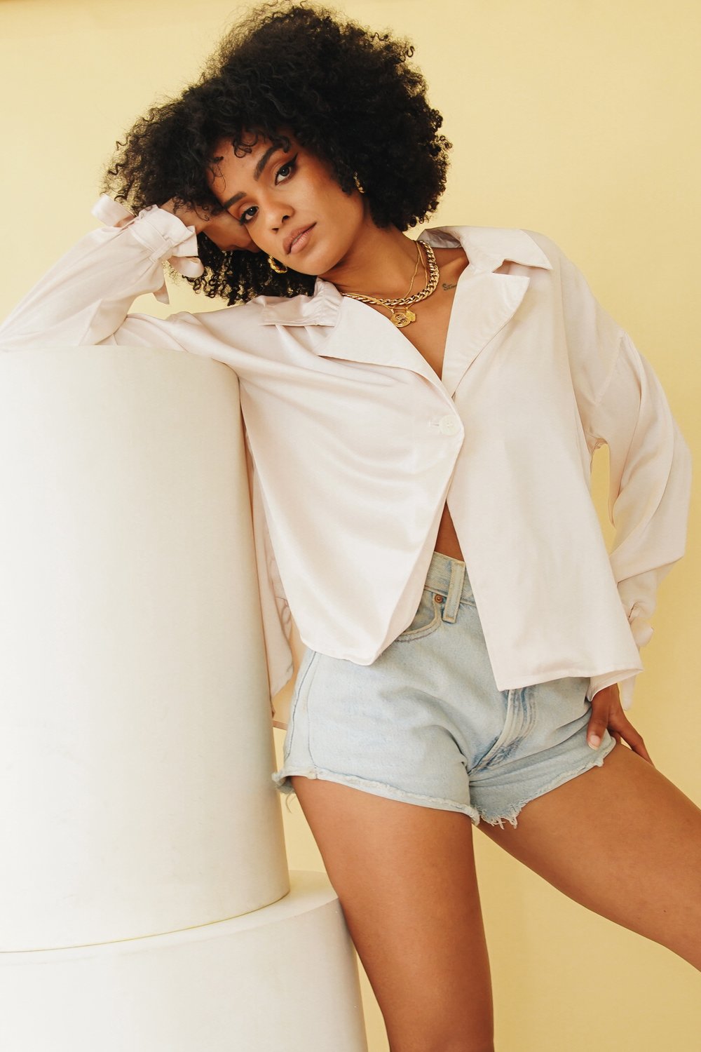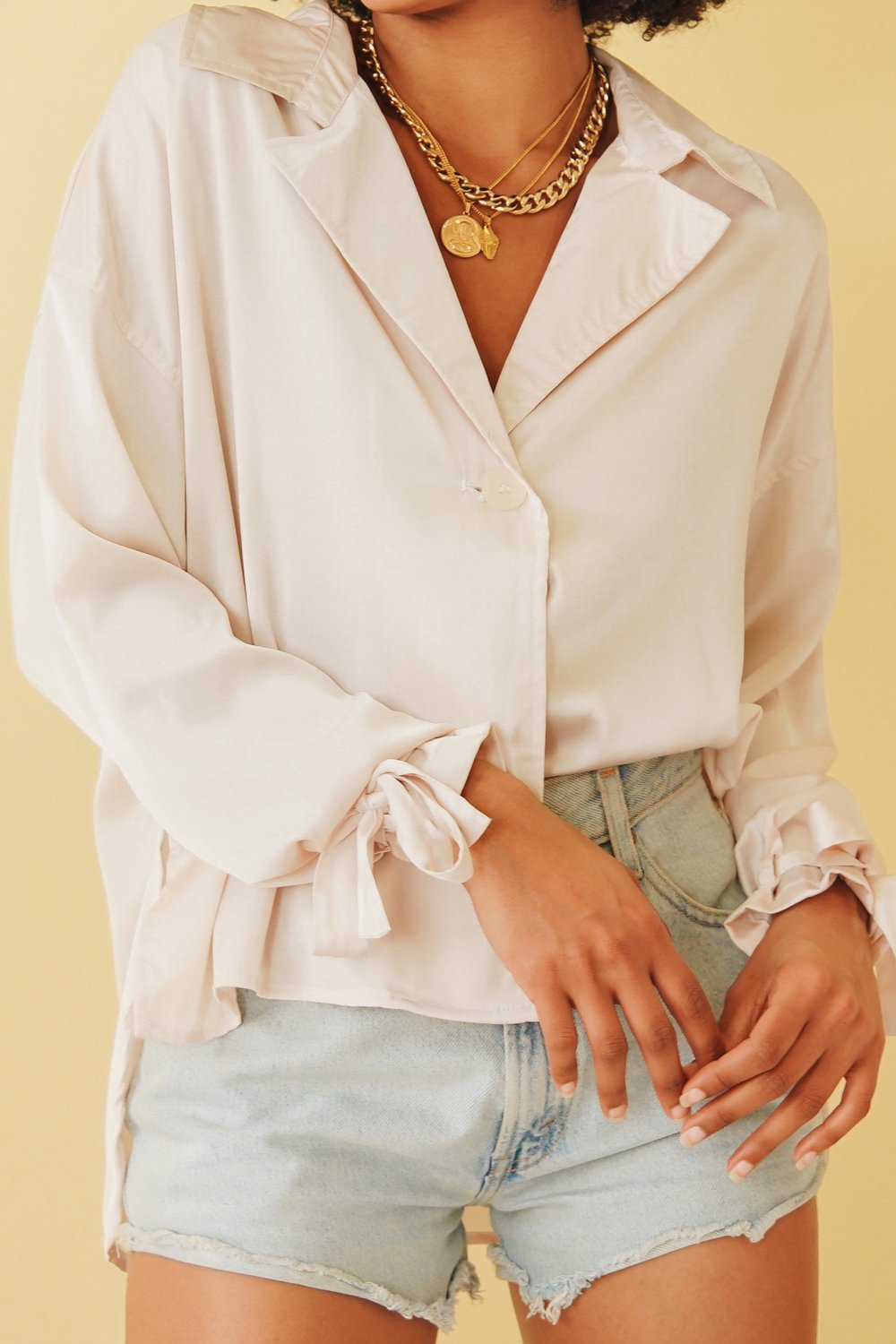 We're always dreaming of Paris & this button front number is making us feel like total French girls! Our One Reason Top is made from a silky fabric & features centre front buttons & tie detailing on the sleeves - we love this number styled with a linen mini & tan boots.