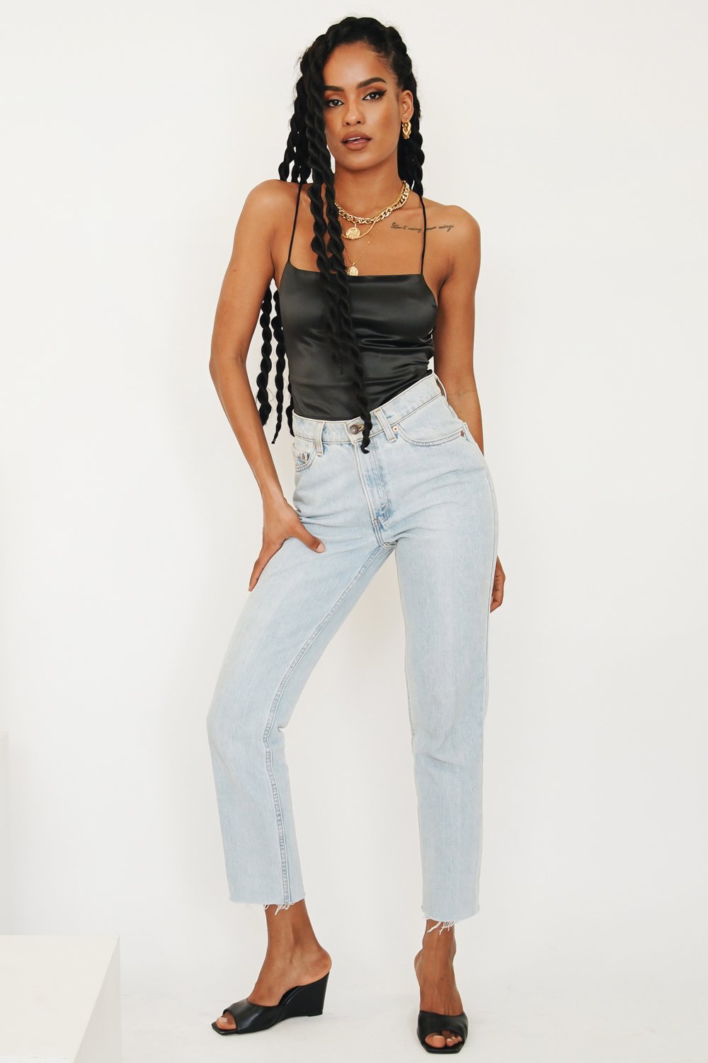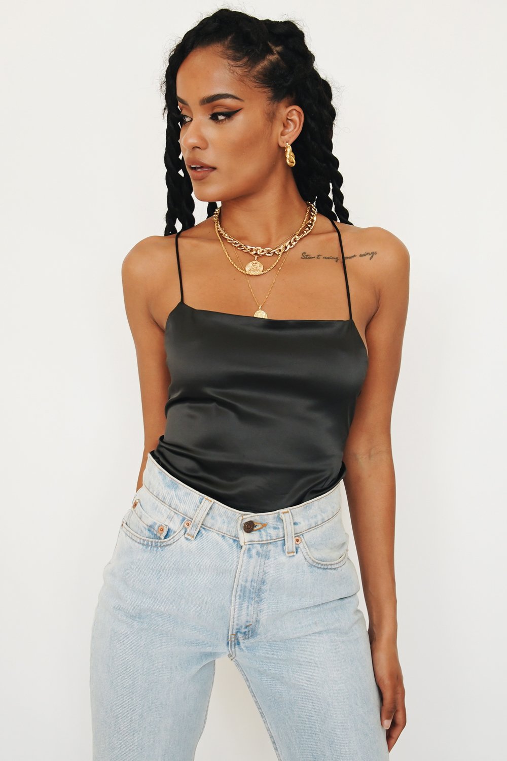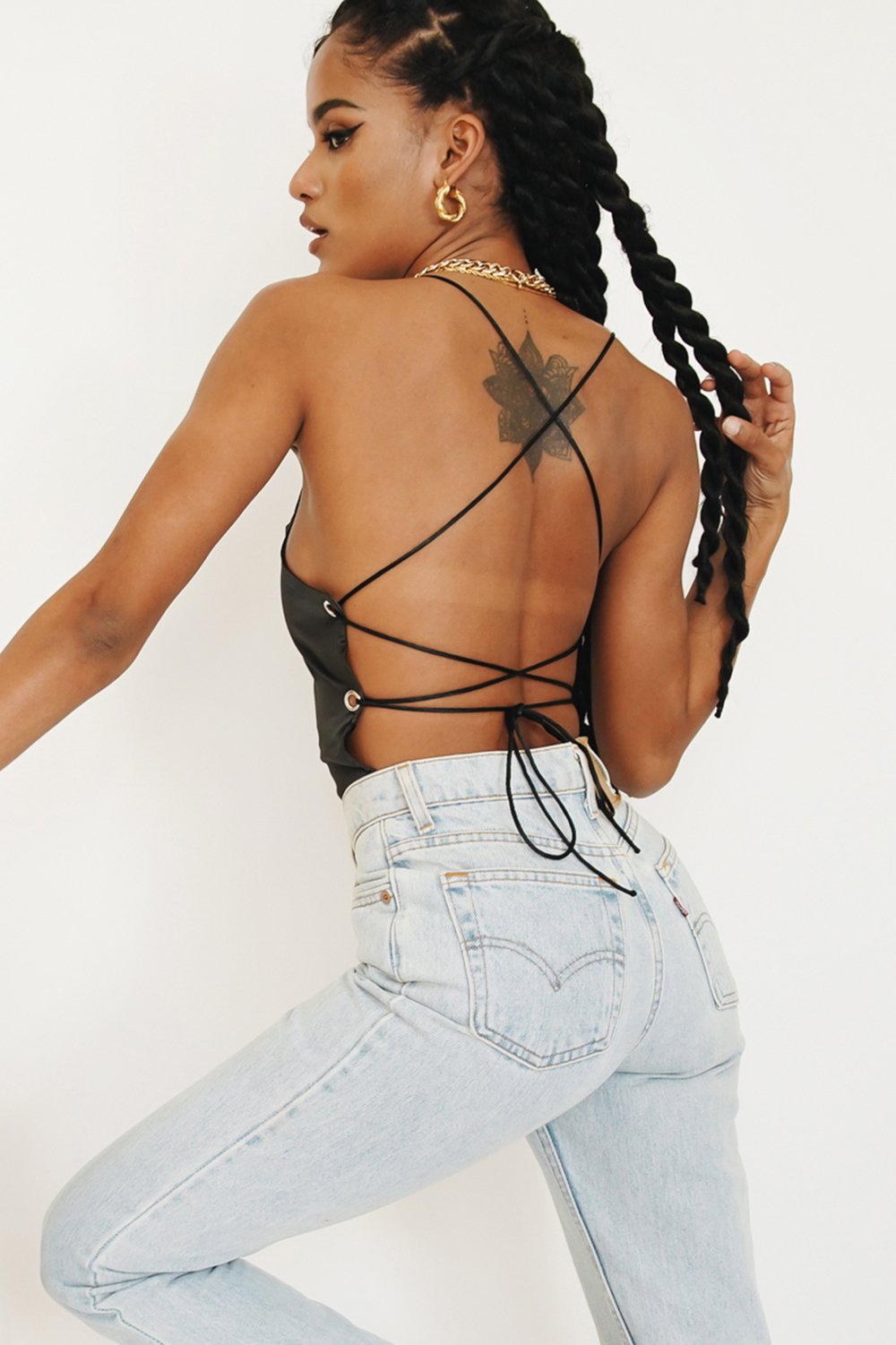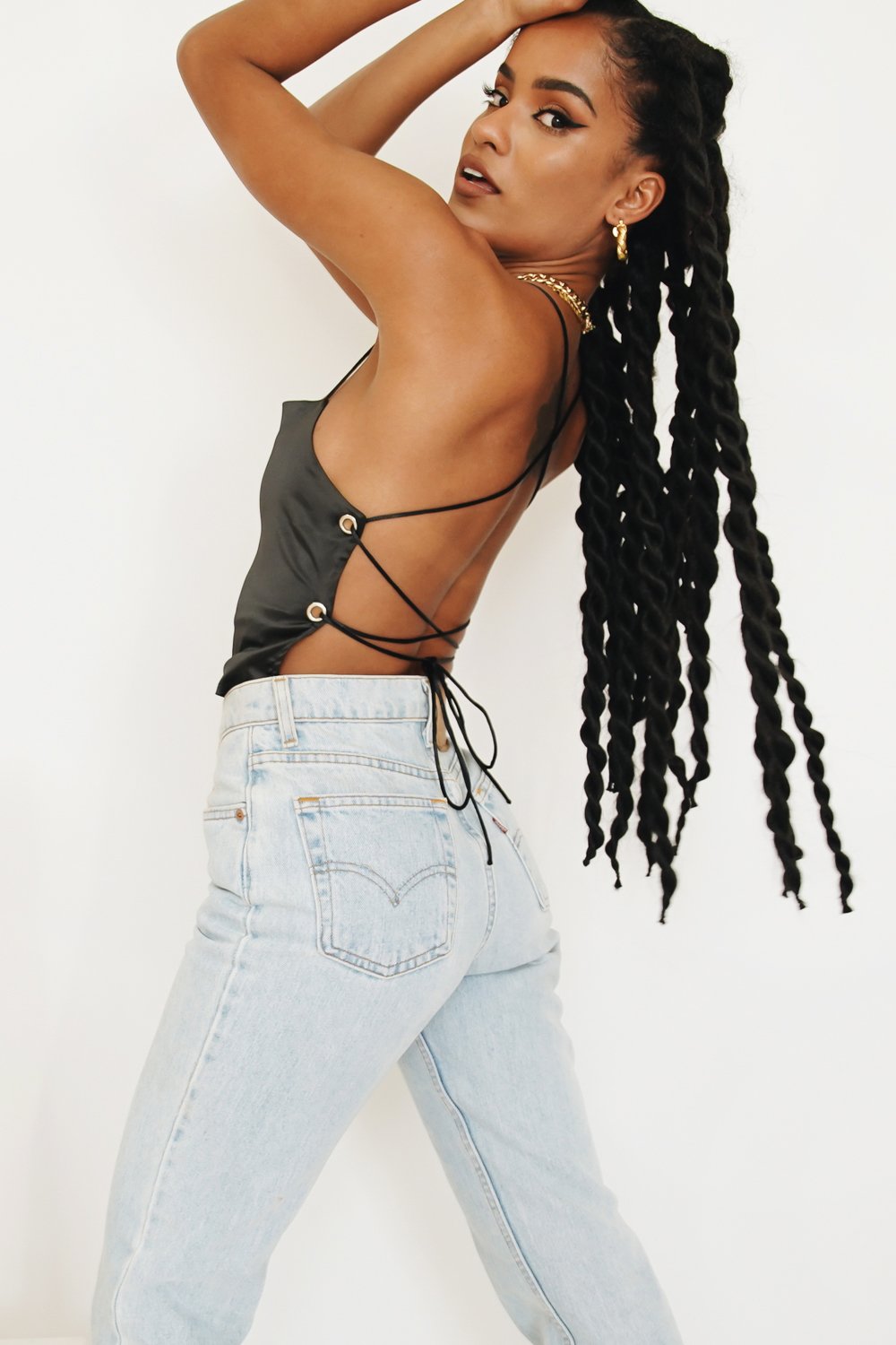 For a night spent dancing & sipping cocktails with the girls! This silky tie back number is made from a soft stretch fabric & will show off your best assets! Style with vintage denim, tie up mules & gold hoops for a look we love!