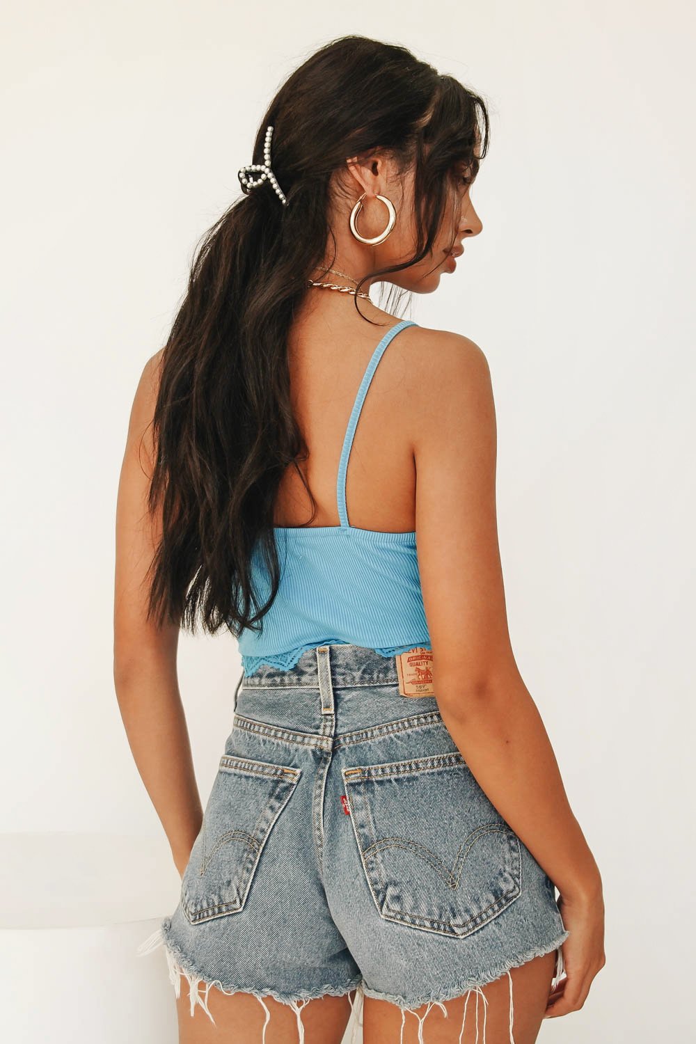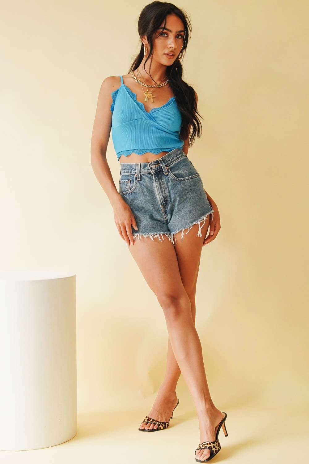 Effortless & Chic. Featuring lace detailing, this stretch ribbed top is giving us total 90's dreamgirl vibes. Our Got The Blues Top is the perfect go-to for a weekend spent with the girls, pair with your fave vintage jeans & mules.