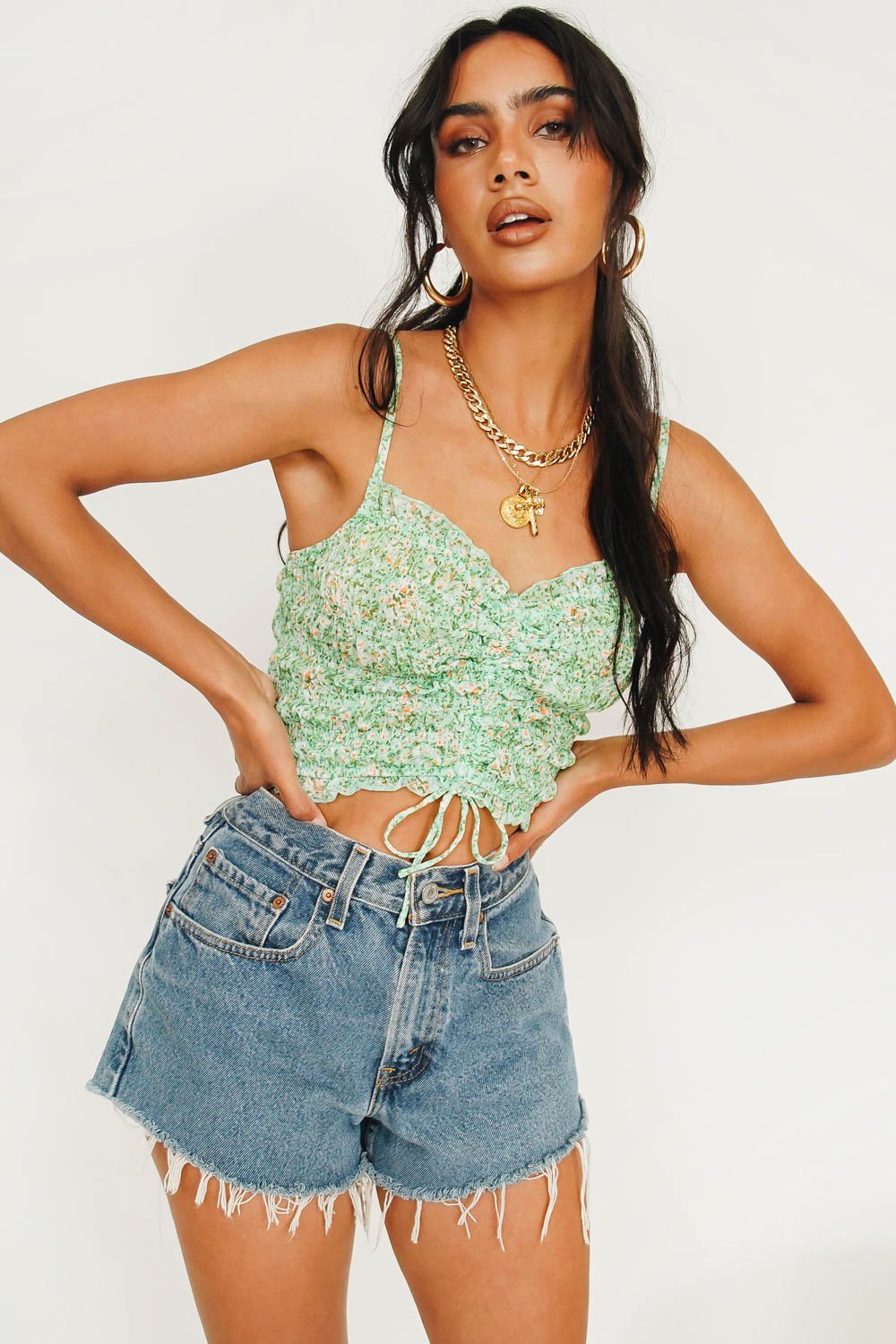 For A Femme Feel... Our Beauty Notes Top features an elastic ruched body & a centre front drawstring. This number looks so cool worn with your fave vintage denim & mules for a feminine cool look.