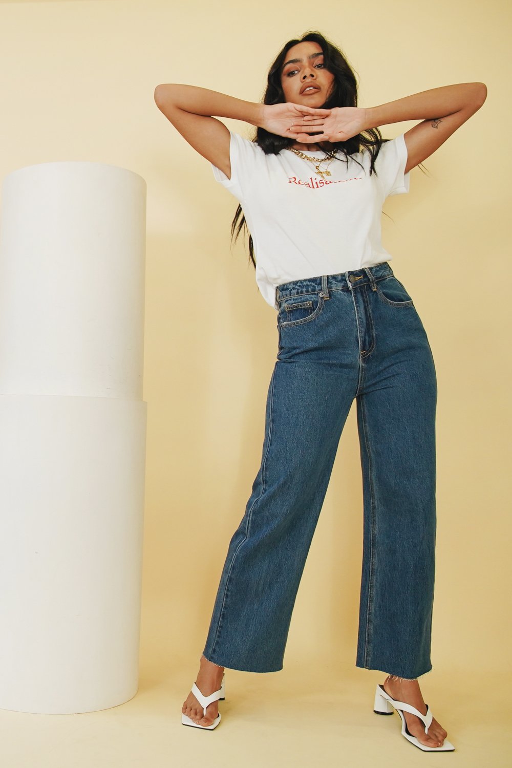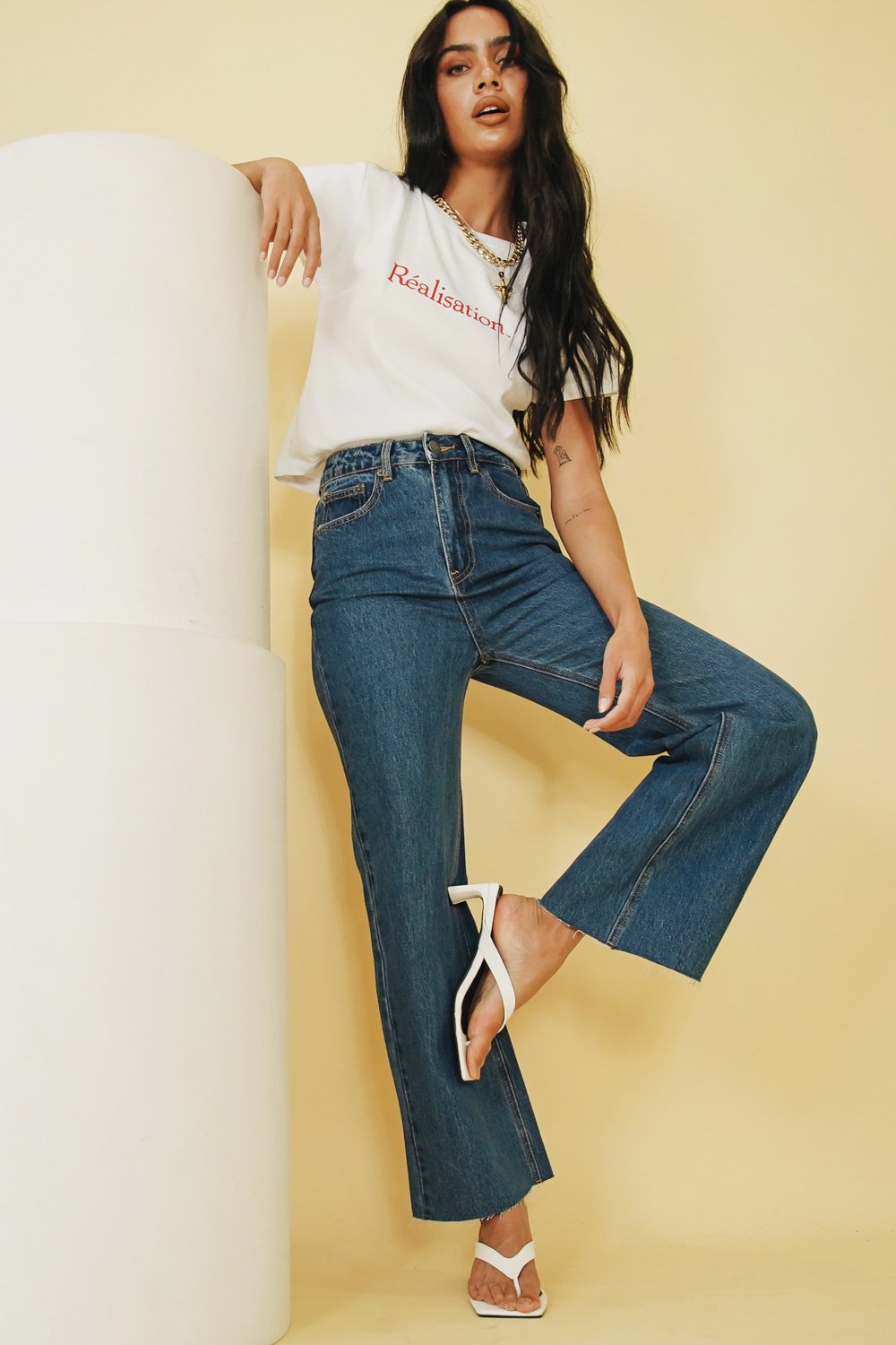 The Denim Jeans You've Been Searching For. Featuring a high waist & straight leg, these jeans will show off your best assets & are the perfect pair to style with anything! We're Obsessed!