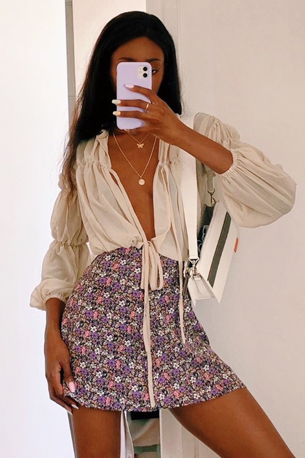 Remembering Summer... For that endless vacay feeling, wake up late & slip into your new fave mini skirt, layer your fave gold necklaces and pair with your fave crop & neutral mules!