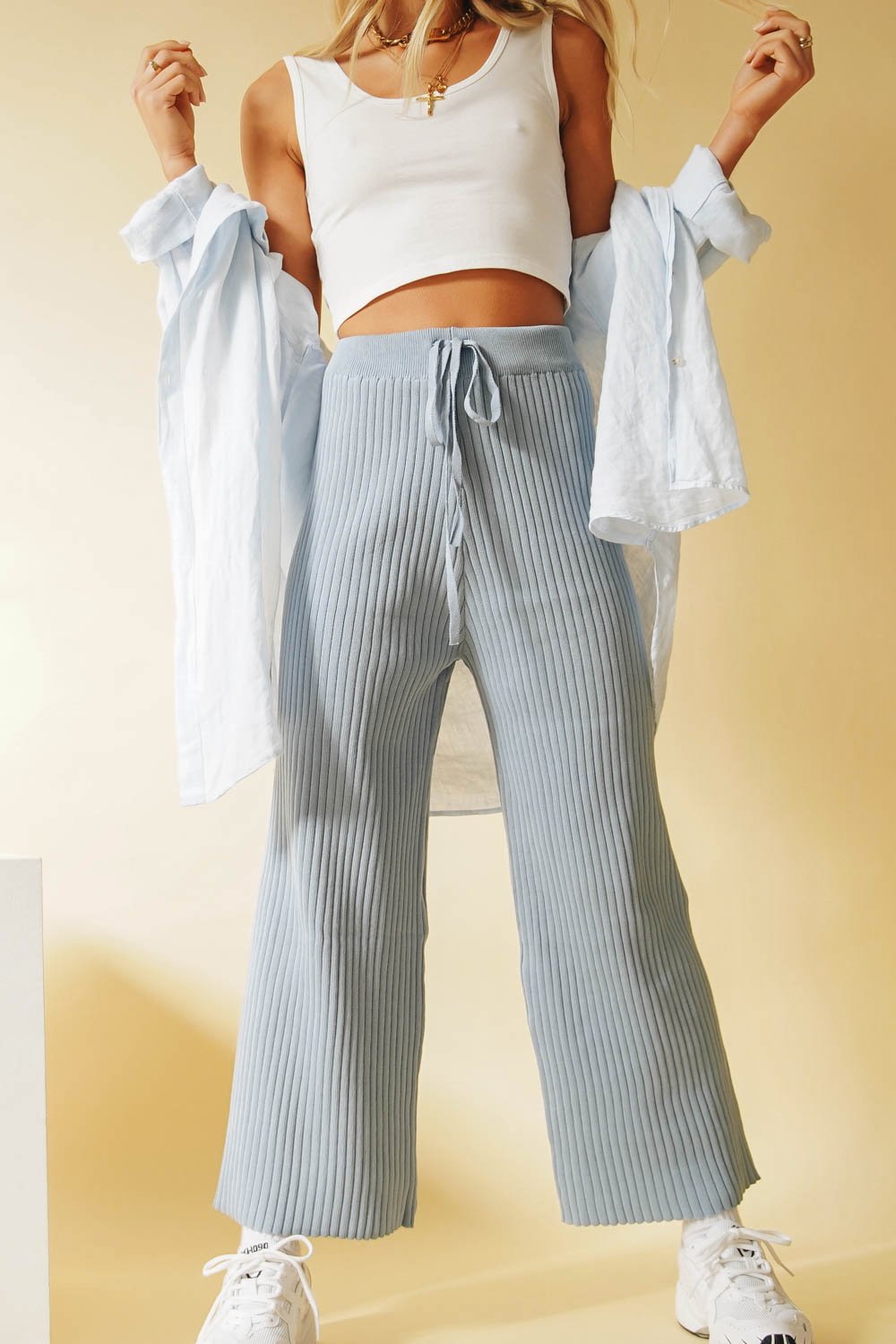 Comfort is key & these babies have everything you want in knit pants! Featuring an elastic drawstring waist & made from a soft ribbed fabric, you can literally wear them with anything & look effortlessly chic. Also available in Mauve, Natural, Sage & Black.