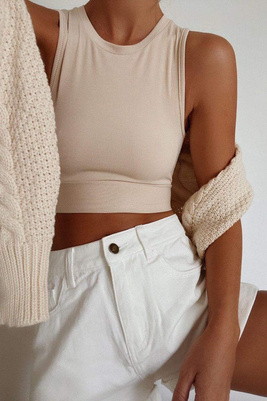 • Load image into Gallery viewer, Cooler Than You Ribbed Tie Back Top // Natural