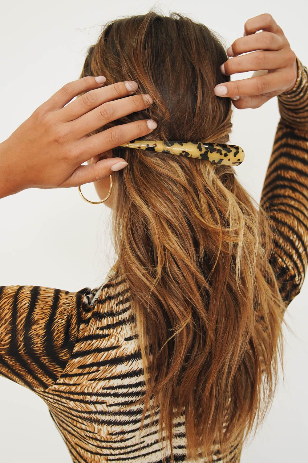 Feeling Femme. Wear our French Town Hair Clip with your fave mini dress & mules for a go-to weekend look! Also available in Gold, Purple & Green.