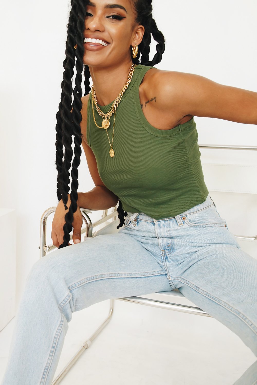 Keep It Cool. Style our Golden Line Ribbed Top with your fave vintage Levi's shorts, printed mules & gold accessories for an effortless weekend look! Also available in Black, Natural, White, Lime, Lilac, Orange & Blush.