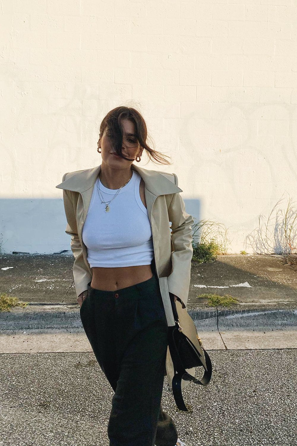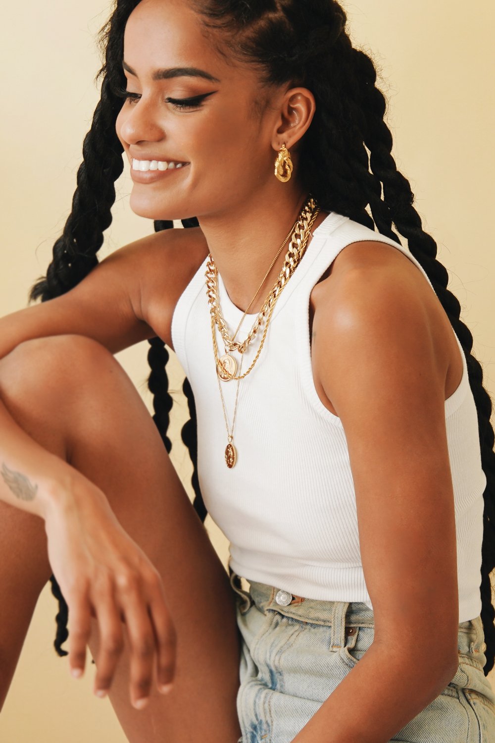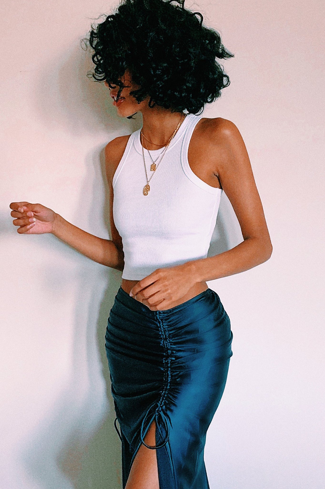 Keep It Cool. Style our Golden Line Ribbed Top with your fave vintage Levi's shorts, printed mules & gold accessories for an effortless weekend look! Also available in Black, Natural, Khaki, Lime, Lilac, Orange & Blush.