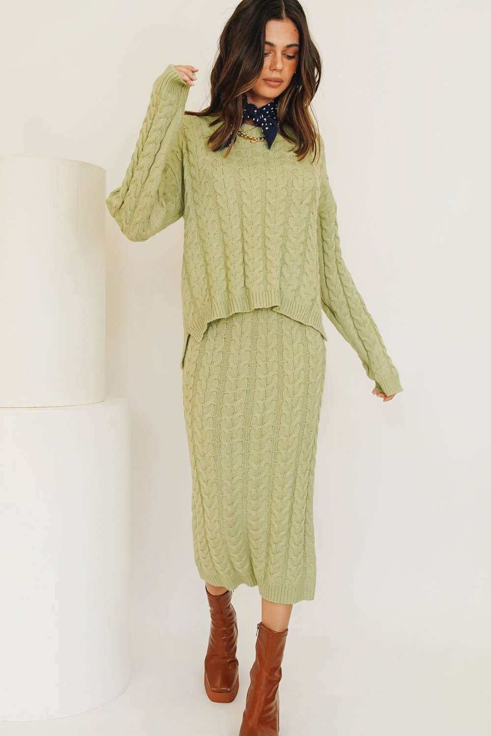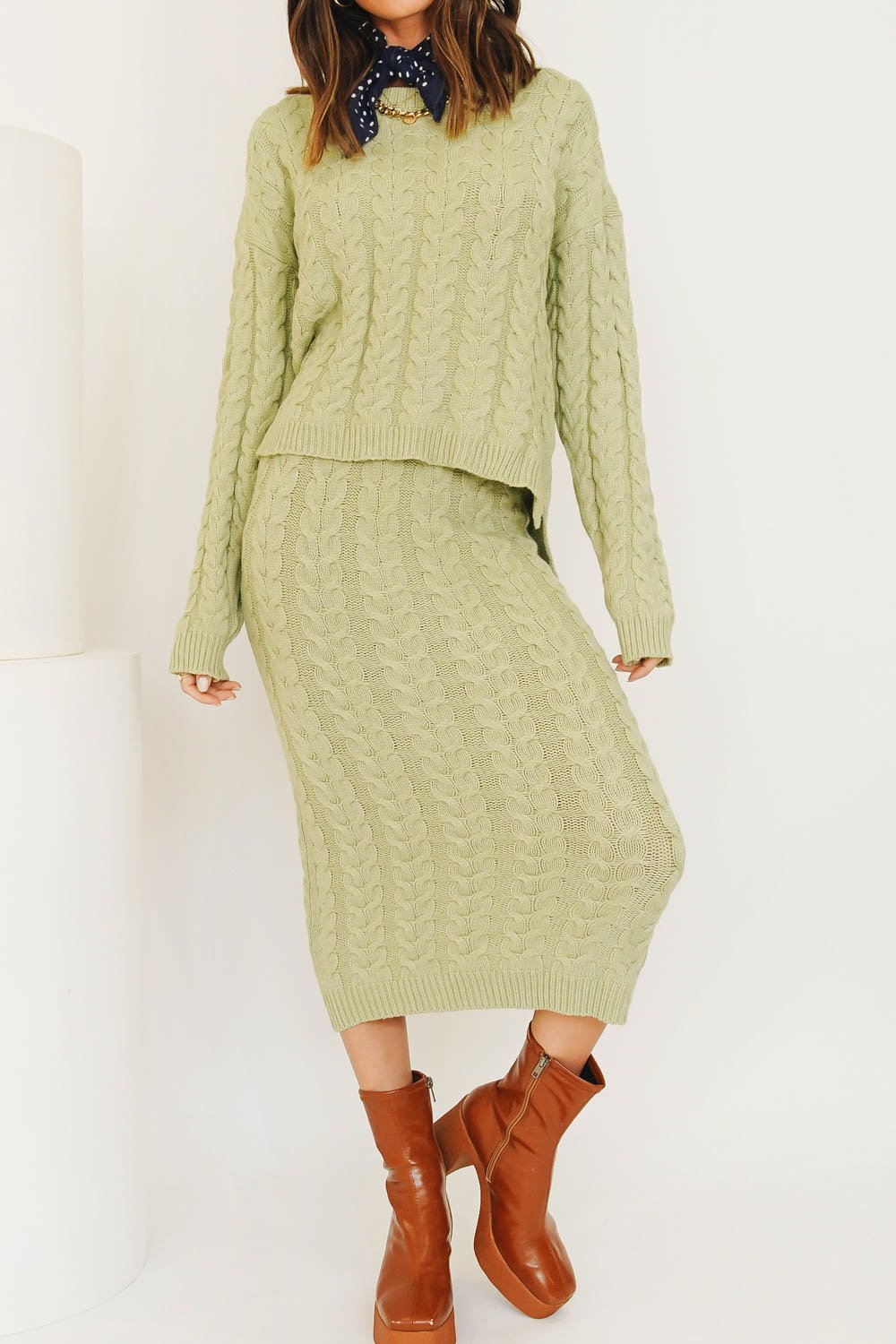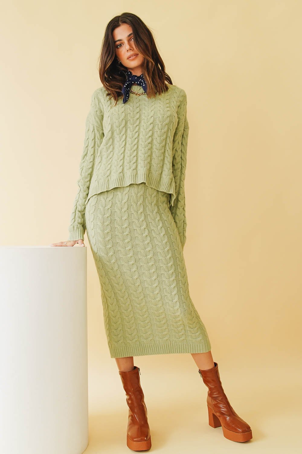 Chic sets made for comfort... Whether you're lounging around at home or heading out for wine with your best girlfriends, you'll be living in this super soft knit combo! Also available in Natural. Our The Connection Knit Set includes both Top & Skirt.