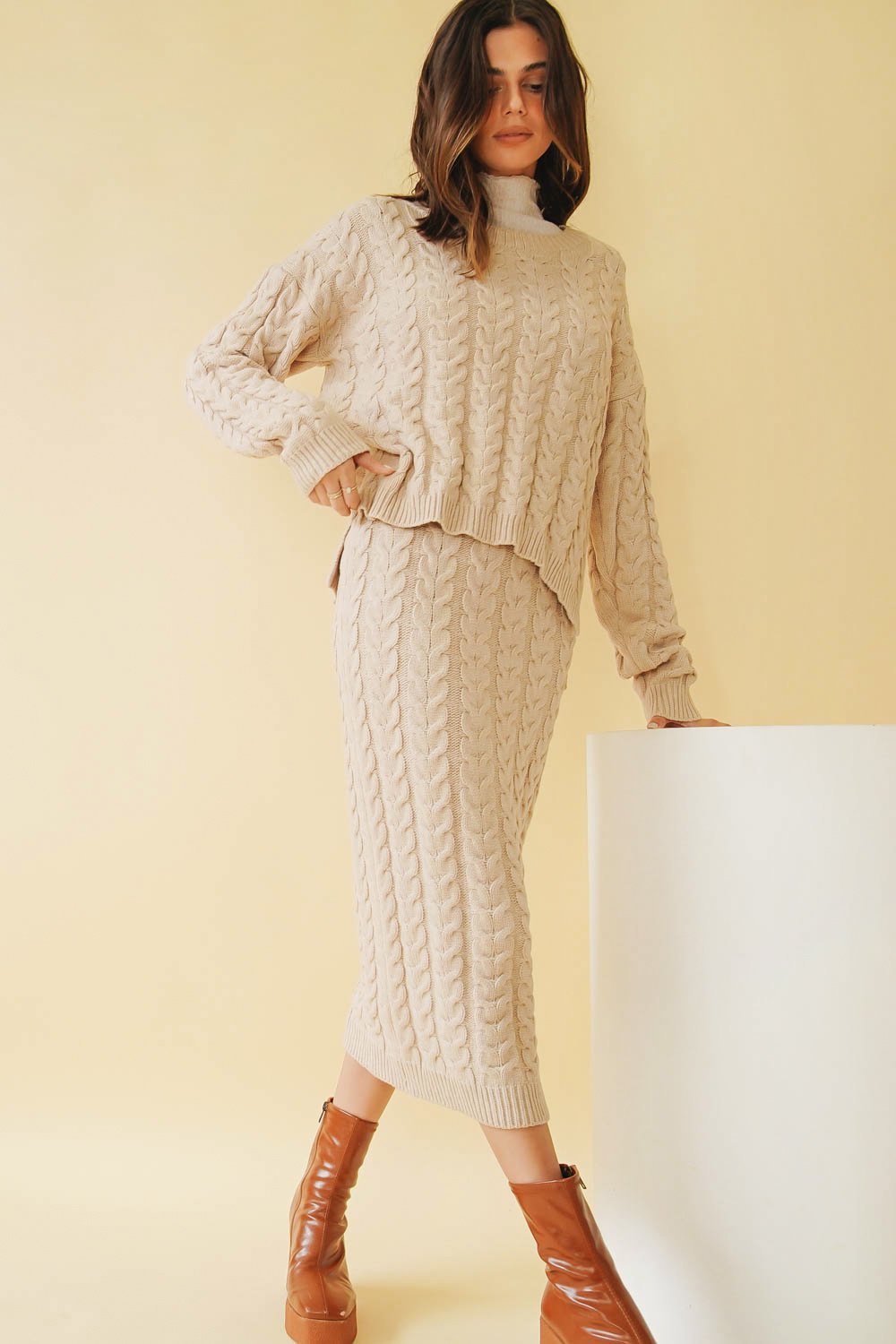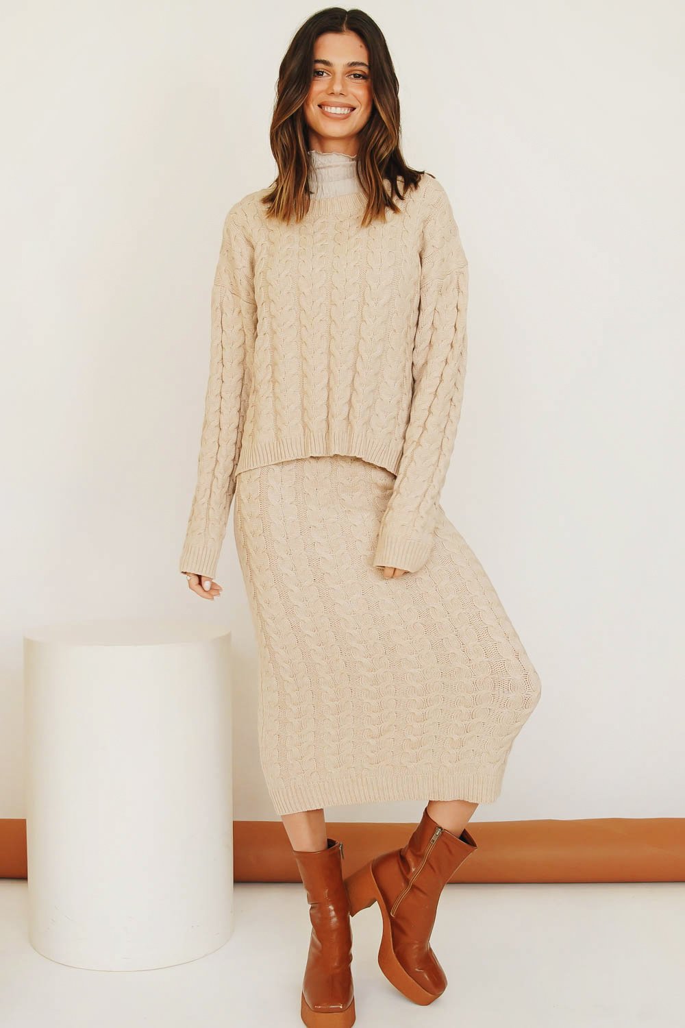 Chic sets made for comfort... Whether you're lounging around at home or heading out for wine with your best girlfriends, you'll be living in this super soft knit combo! Also available in Sage. Our The Connection Knit Set includes both Top & Skirt. Please note top worn underneath is sold separately.