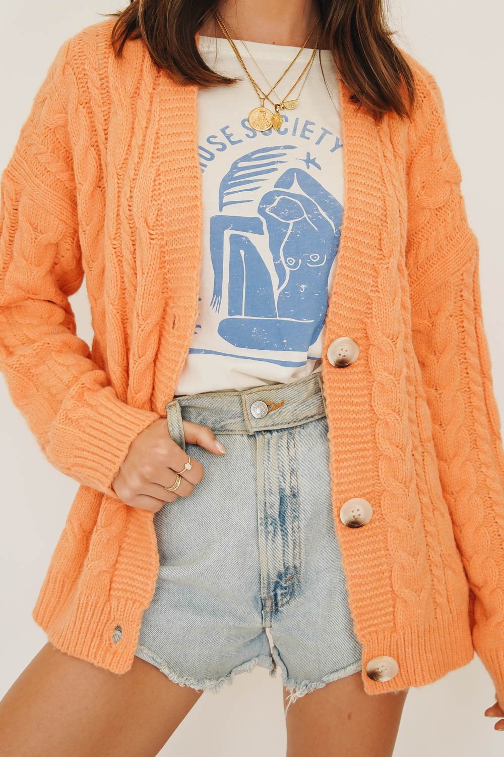 Comfort Meets Cool... Our Straight To Paris Button Front Cardi features centre front buttons, so you can wear this number buttoned up or layered over your fave tee - trust us, you won't be taking this one off! Also available in Baby Pink & Sage.