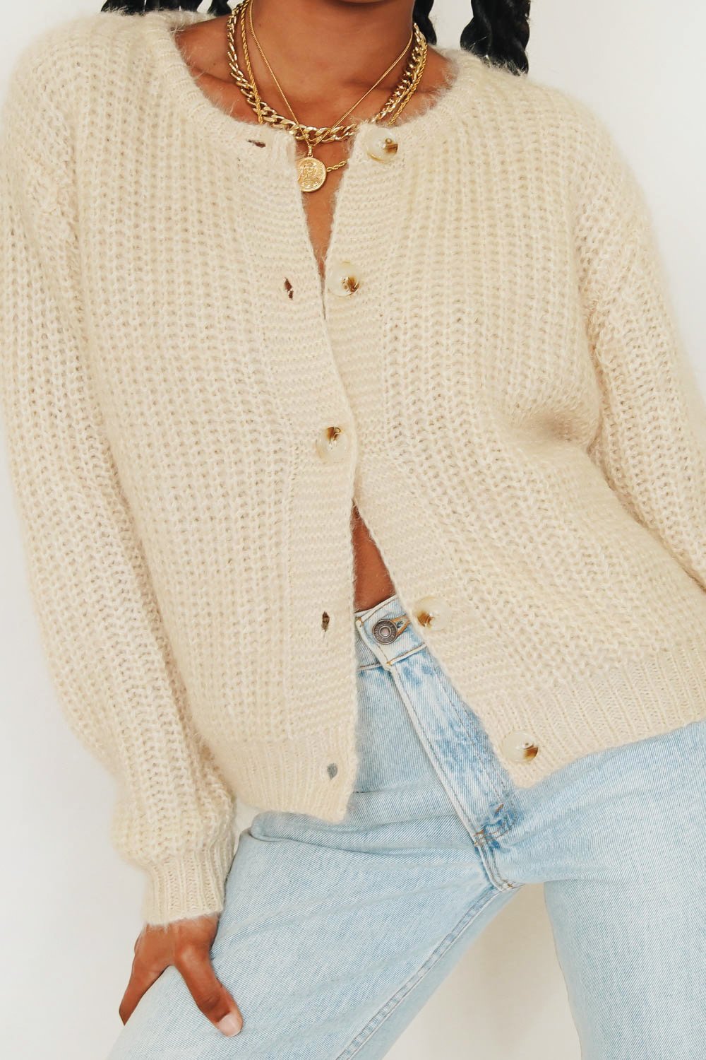 Saturday In L.A Button Front Knit Cardigan // Natural