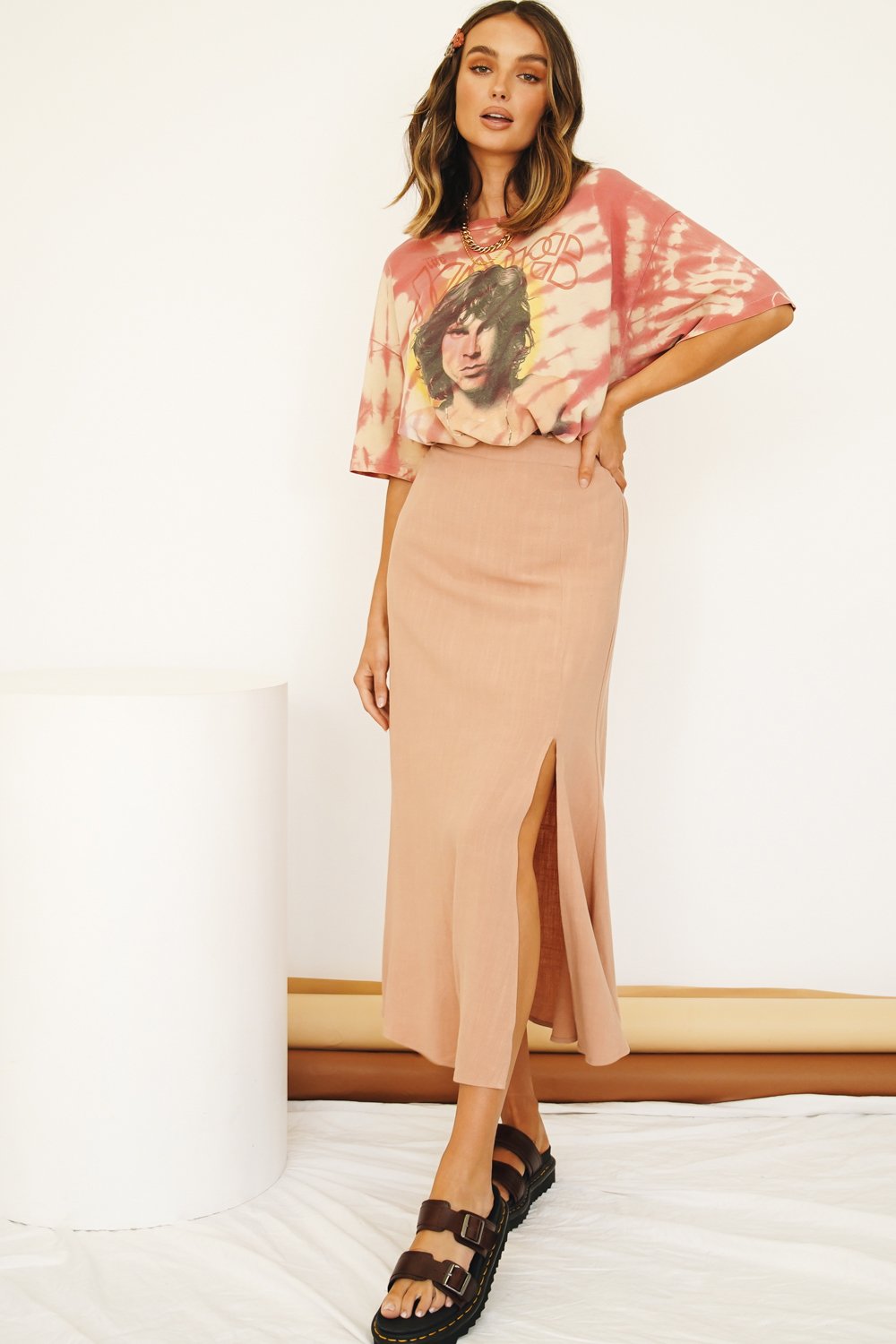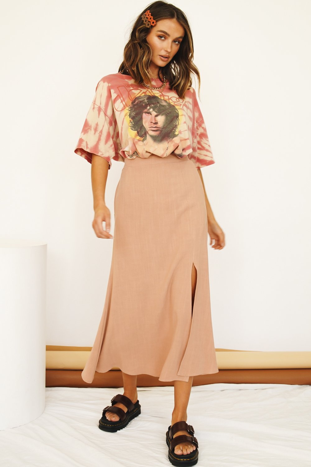 For summer cocktails & dancing with your best girlfriends... Featuring an elastic back waist & side pockets, this midi skirt will let your hips do all the talking! For a look we love, wear with a vintage tee & tie up mules!