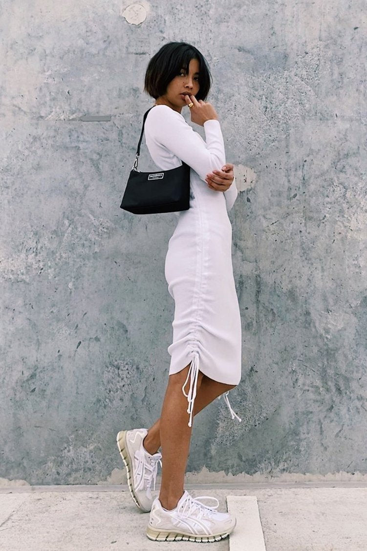 Chic Street Style Vibes! Feel femme & chic in our Chase The City Drawstring Mini Dress, so cool styled with your fave neutral heels & gold accessories! Also available in Black, Sage & Natural.