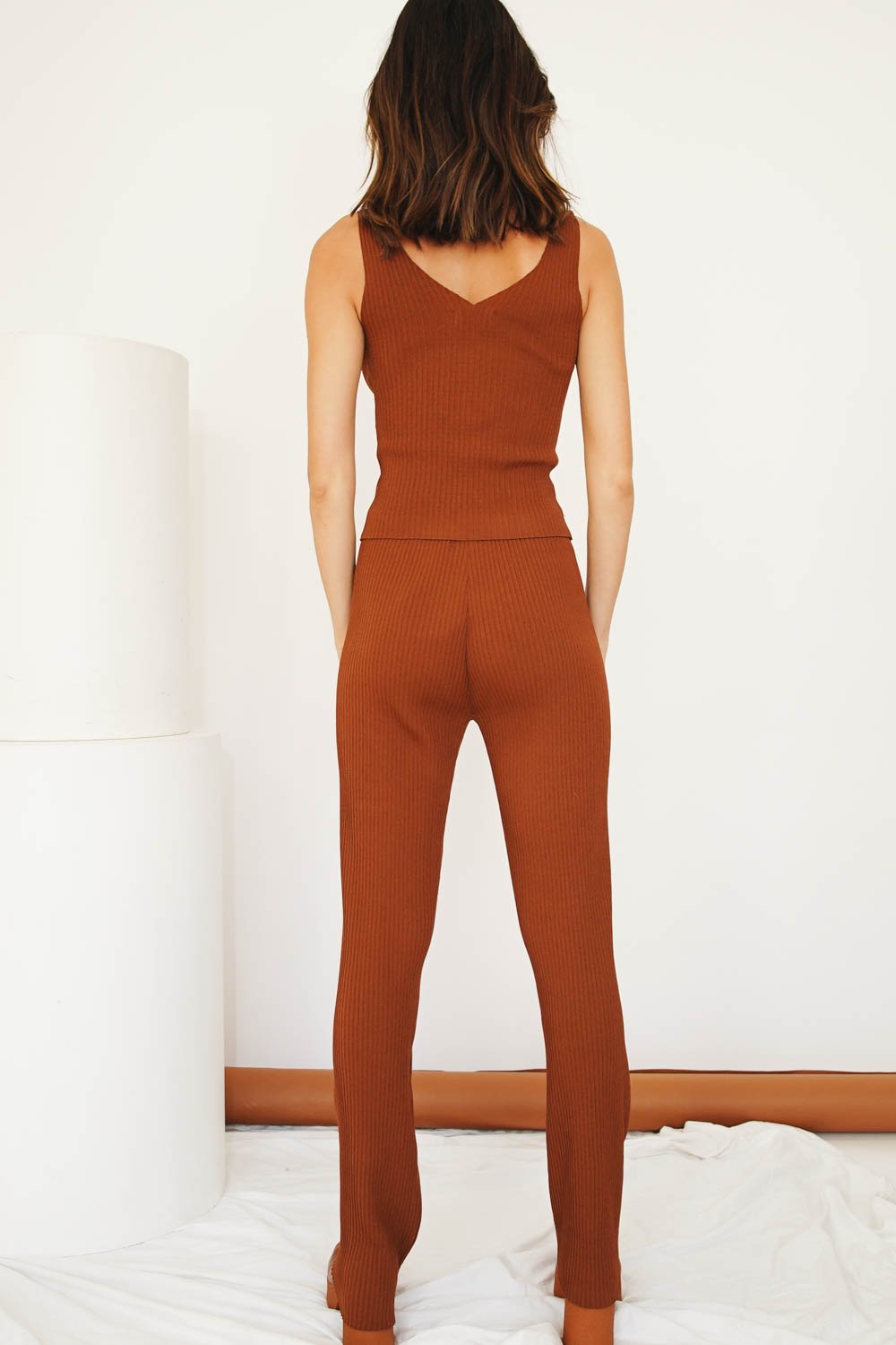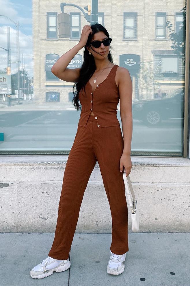 Comfort is key & this set has everything you need! Made from a soft stretch ribbed fabric, our Her Occasion Knit Set looks so cool worn with your fave boots & gold hoop earrings! Also available in Black. Our Her Occasion Set includes Top & Pants. Please note shirt worn is not included.