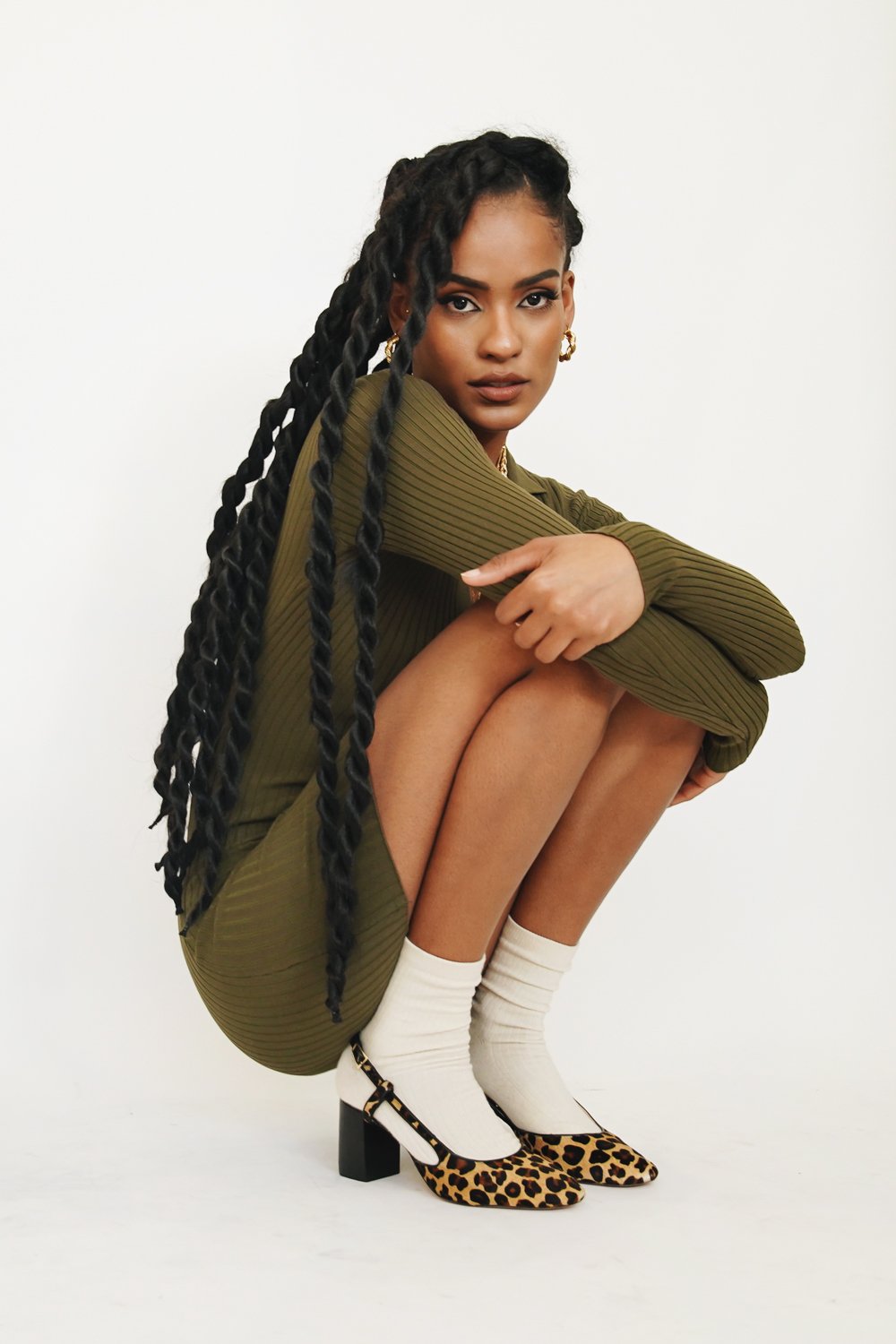 A New York Afternoon. Style this ribbed knit mini dress with leopard print mules & layered gold accessories for an effortless street style look. Also available in Moss, Black & Mocha.
