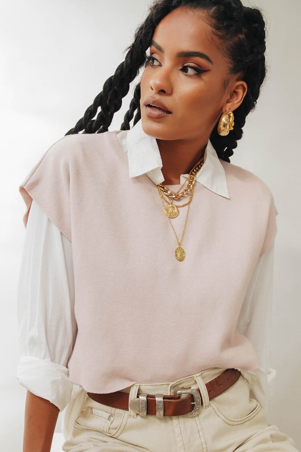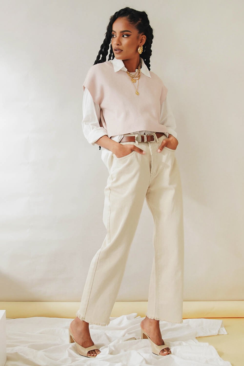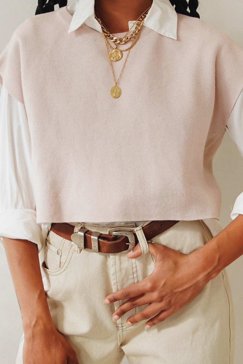 The ultimate NY street style look! Our New York Escape Knit Top is a super comfy soft fabric & has a cool cropped look - we love this number styled with vintage denim & mules! Also available in White. Please note shirt worn underneath is not included.