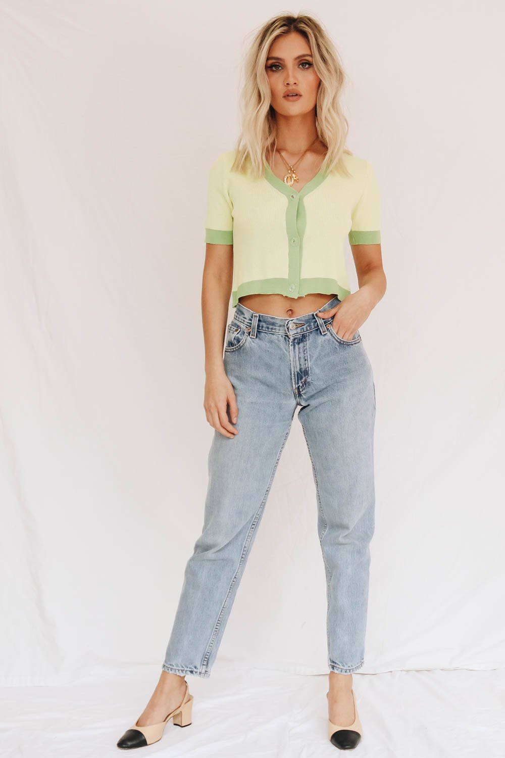 Sipping Limoncello's In Italy... Style this knit top with your fave vintage denim, mules & gold hoops for your next vacay. Also available in Lavender.