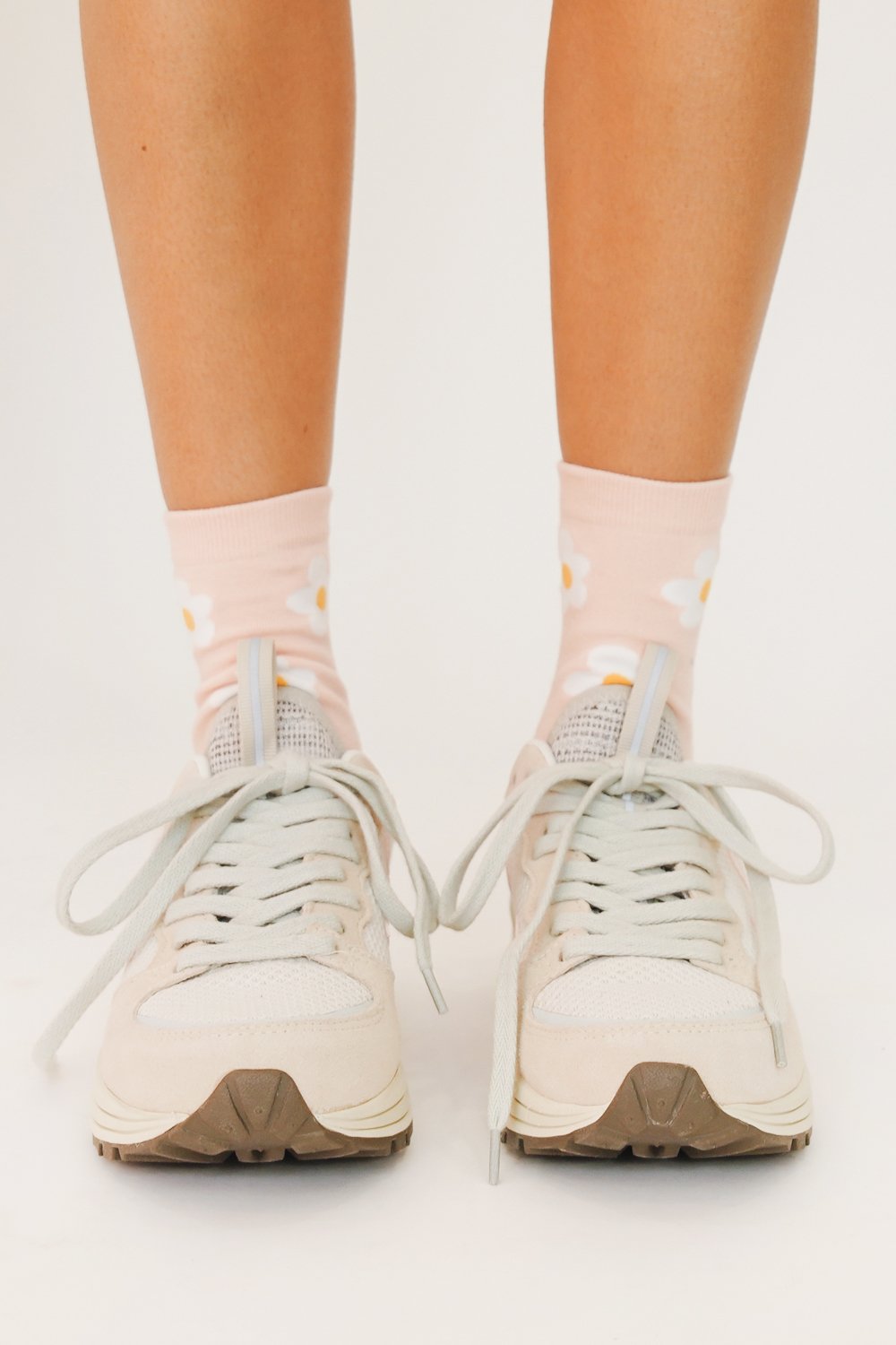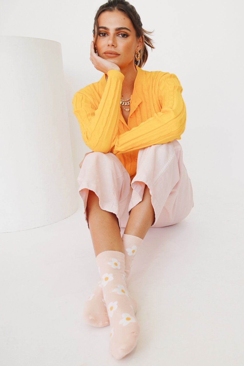 Our It's A Vibe Socks are so comfy & they look so cool worn on their own while you're lounging around or with your fave sneakers & a mini dress for a street style vibe. Also available in White, Mustard & Navy.